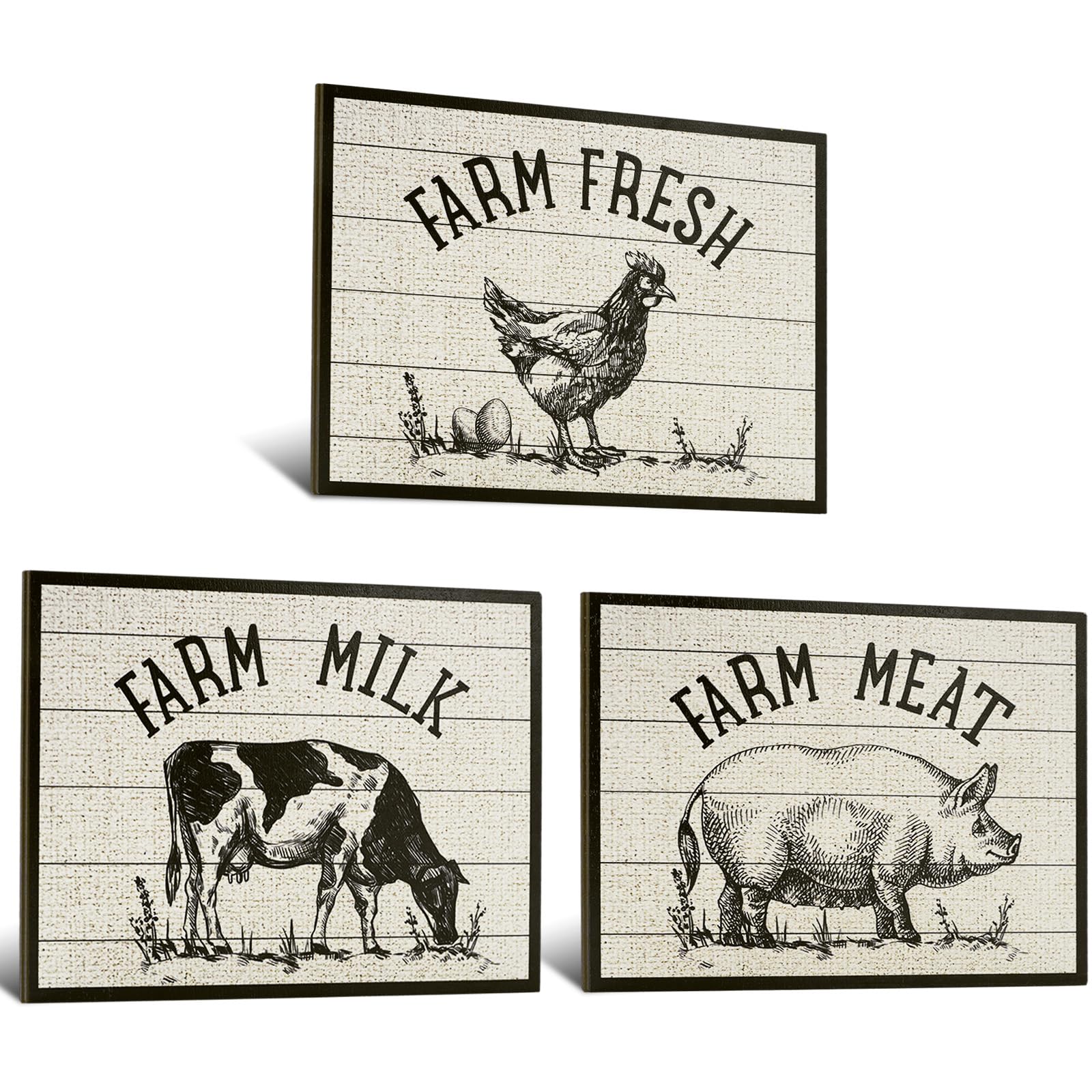 AnyDesign 3Pcs Farm Animal Wooden Hanging Sign Cow Rooster Pig Wood Sign Rustic Farmhouse Kitchen Wall Art Decor for Home Kitchen Wall Decor|Home & Garden