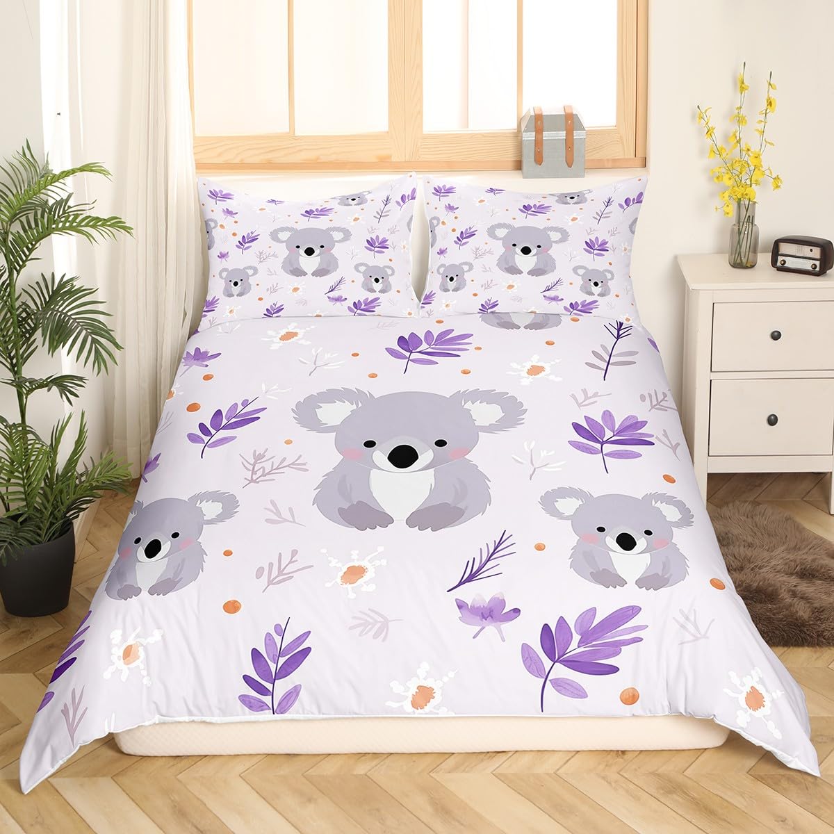Feelyou Kids Cartoon Koala Bedding Set Full Size Cute Koala Duvet Cover for Teens Boys Girls Bedroon Decor Koala Floral Plants Comforter Cover Soft|Home & Garden