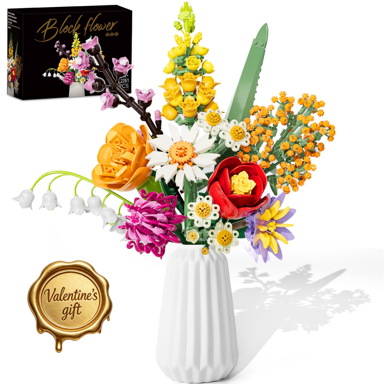 Flowers Bouquet Building Set, 1070PCS Artificial Plant Flower Kit Toy for Adults Kids Women Her, Wildflower Botanical Collection, Home Decor Gift for|Home & Garden