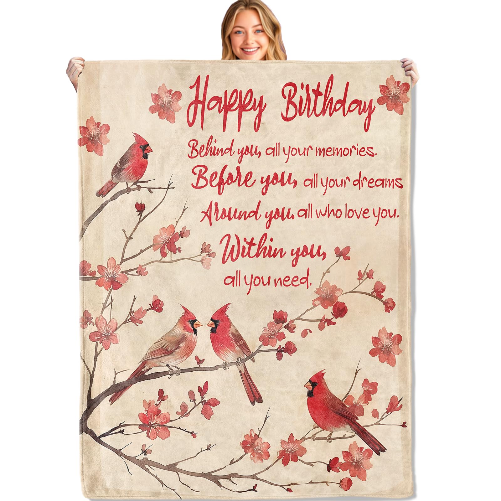 MIEPOS Happy Birthday Blanket Gifts for Women Girls, 50x60in,Festival Party Decor,Cardinal Birds Love Blankets,Unique Gift Ideas for Mom Sister|Home & Garden
