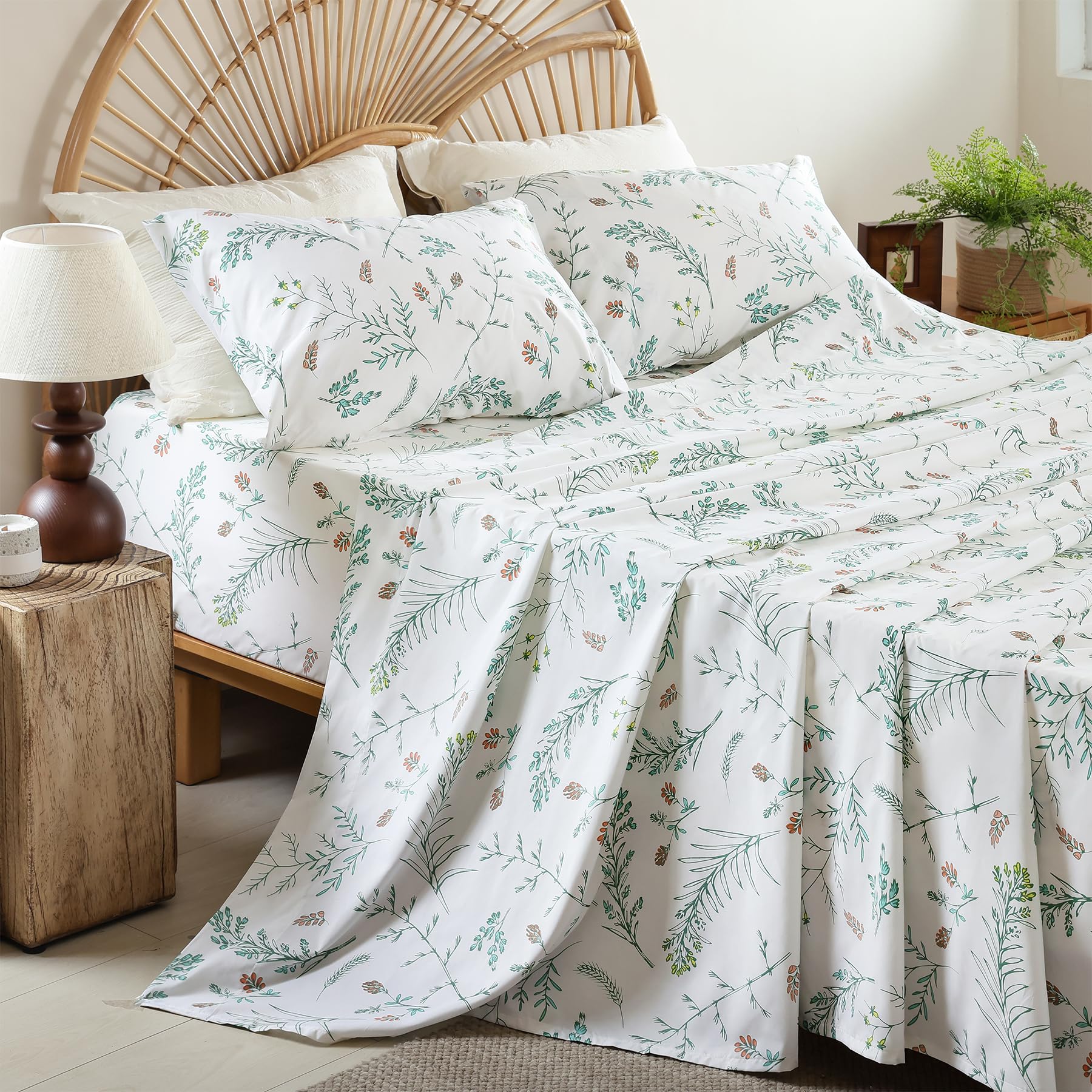 Whitney Home Textile Floral Printed Full Sheet Set - Soft Boho Botanical Rustic Pattern Bed Sheets, Microfiber Bedding & Pillowcases, Oeko-Tex,|Home & Garden