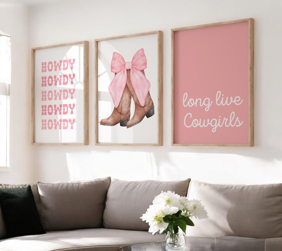 3 Pieces Cowgirl Boot Print Pink Howdy Canvas Poster Print Pink Bow Boots Wall Art Painting for Bathroom Bedroom Teen Girl Room Decor Unframed|Home & Garden