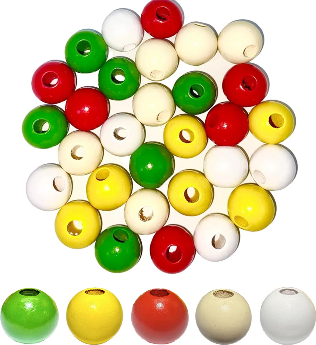 30Pcs Natual Wooden Colorful Round Beads – 30mm Large Wooden Spacer Beads for Crafts, Home Party Festival Decoration & Home Decor DIYGarland 10mm Hole|Home & Garden