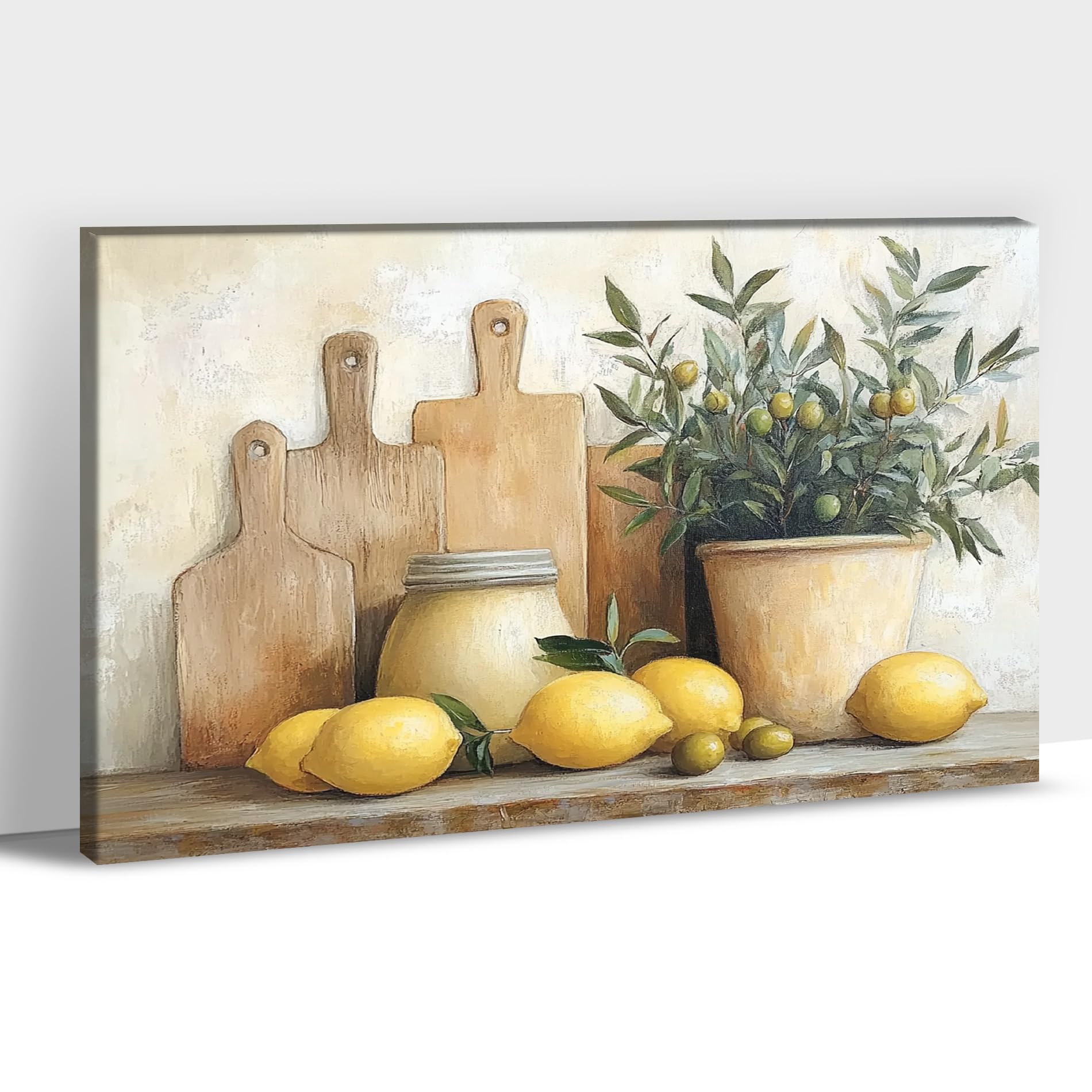 ANRUOXI Vintage Fruit Lemon Wall Art, Yellow Lemon Pictures for Kitchen Wall Art Prints, Kitchen Pictures Citrus Painting, Framed Fruit Posters for|Home & Garden
