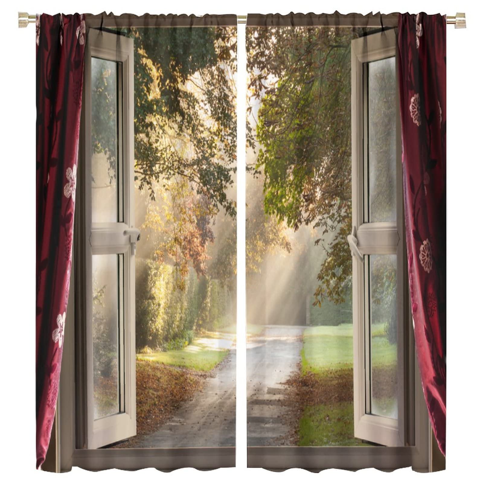 Natural Scenery Curtains Light Penetrates Through Trees Beautiful Scenery Bedroom Decor Rod Pocket Blackout Window Drapes 2 Panels Set 63x72in|Home & Garden