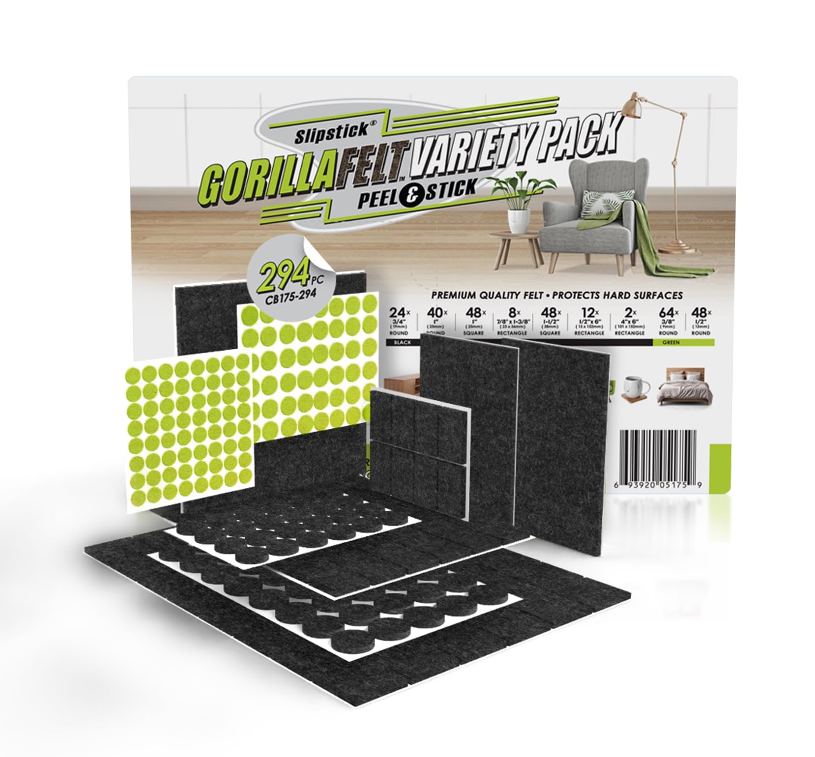 Slipstick Gorilla Felt Furniture Pads (294 Piece Variety Pack) Premium Furniture Pads & Chair Leg Floor Protectors for Hardwood Floors & Hard Surfaces|Home & Garden