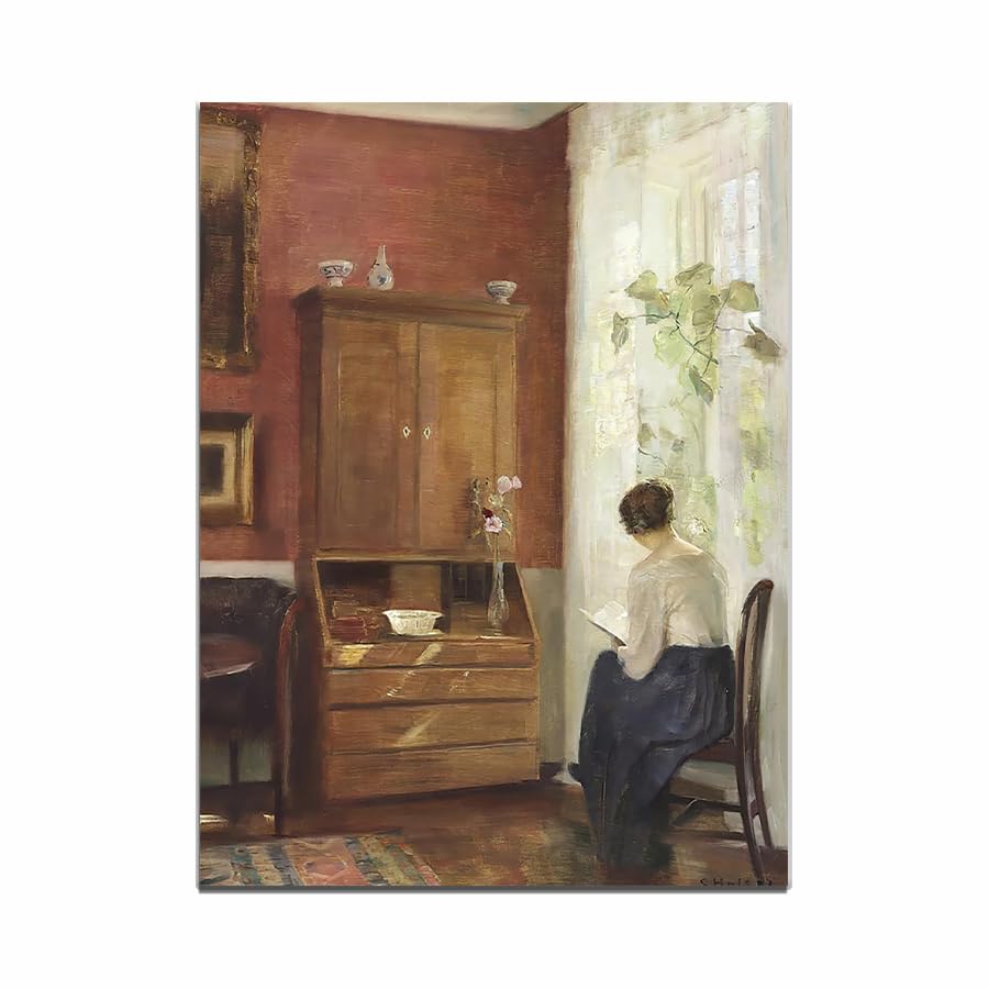 Antique Woman Reading Portrait Wall Art Vintage Oil Canvas Painting posters Woman Reading Art Canvas Print Bedroom Wall Decor 11x14 Unframed|Home & Garden