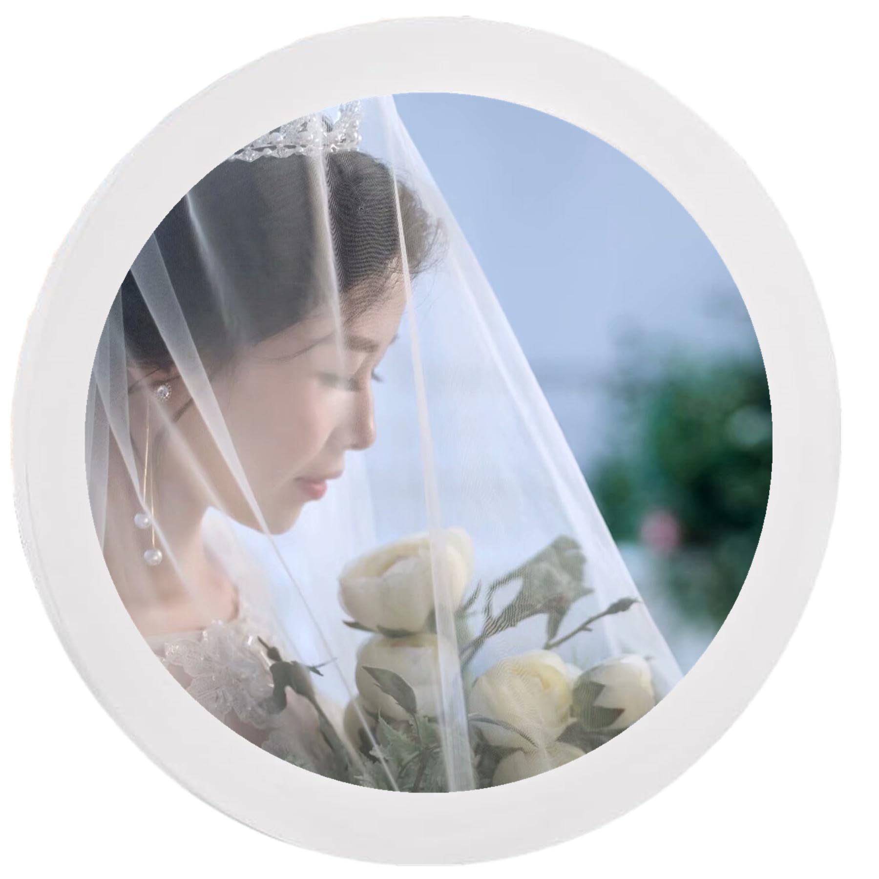 alfyng Round Photo Frame Wooden Wall Hanging Picture Frames for Home Office Wall Décor (White, 12 inch)|Home & Garden