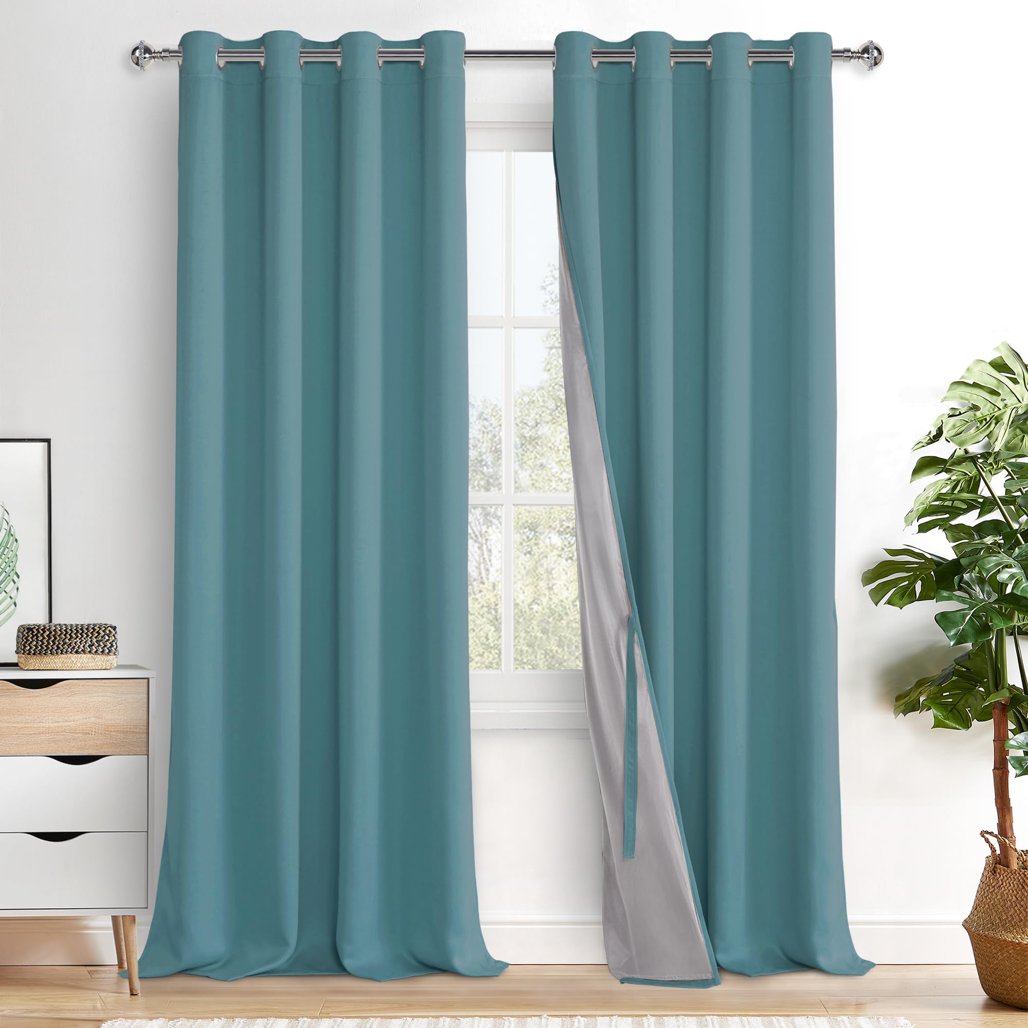 XWZO 100% Blackout Curtains - Thermal Insulated Black Liner Curtains, Noise Reducing and Heat Blocking Drapes for Hall and Studio Windows with|Home & Garden
