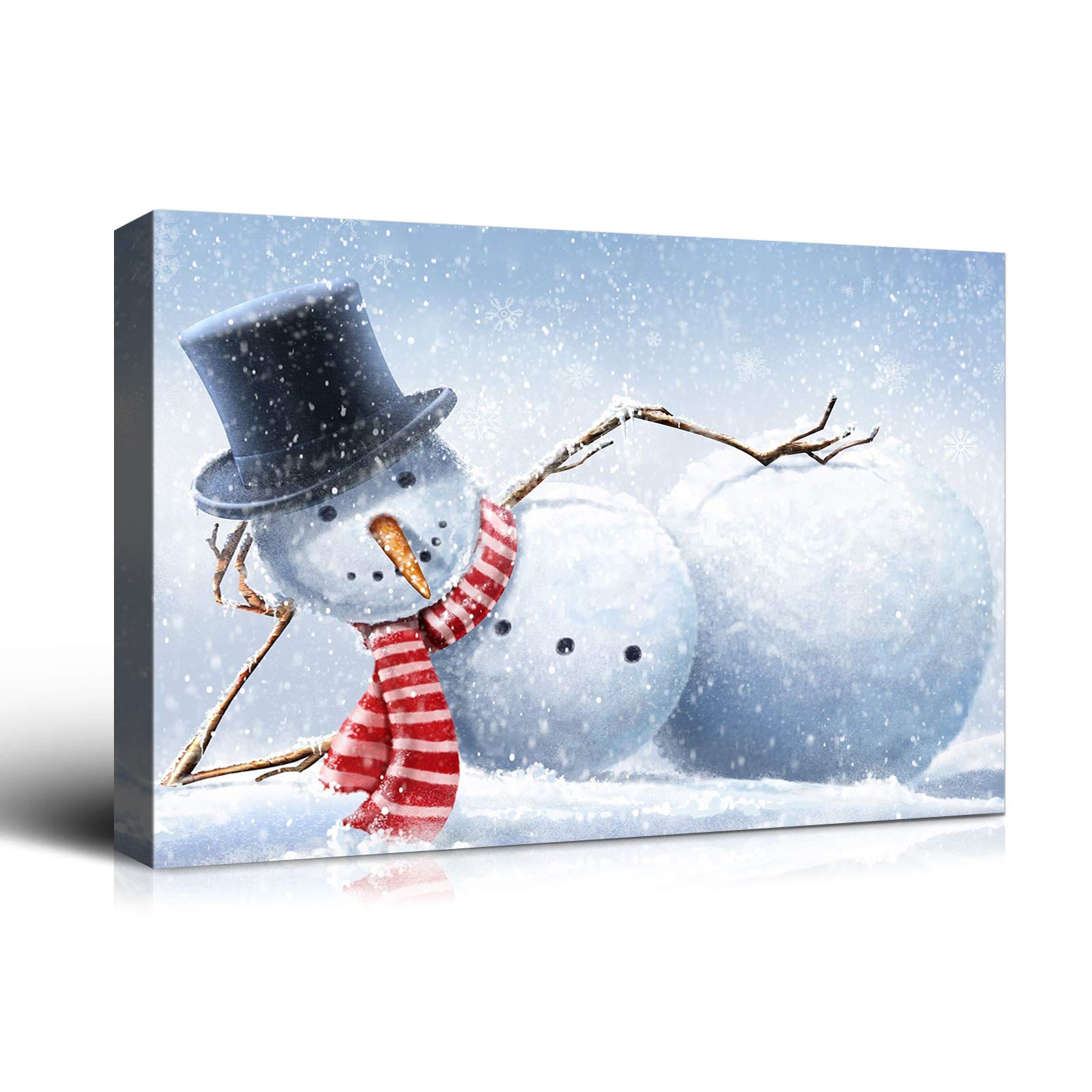 Denozer - Christmas Snowman Wall Art Painting Pictures Festival Art Print On Canvas for Bedroom Living Room Home Wall Decor,Stretched and Framed Ready|Home & Garden