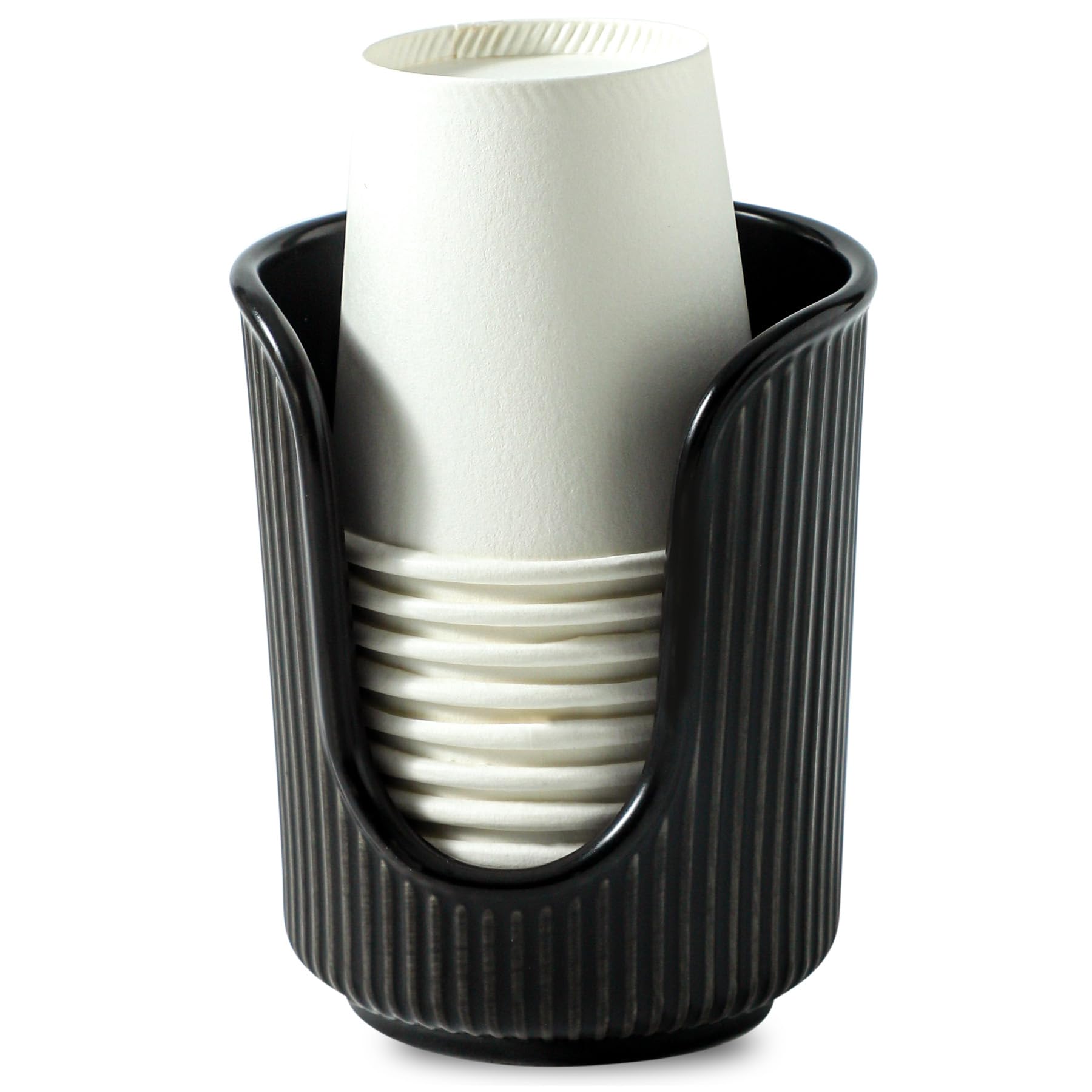 Dobbyby Ceramic Bathroom Cup Dispenser with Stylish Vertical Stripes - Disposable Mouthwash Cup Holder Holds 3-4oz Paper Cups for Rinsing Cups on|Home & Garden