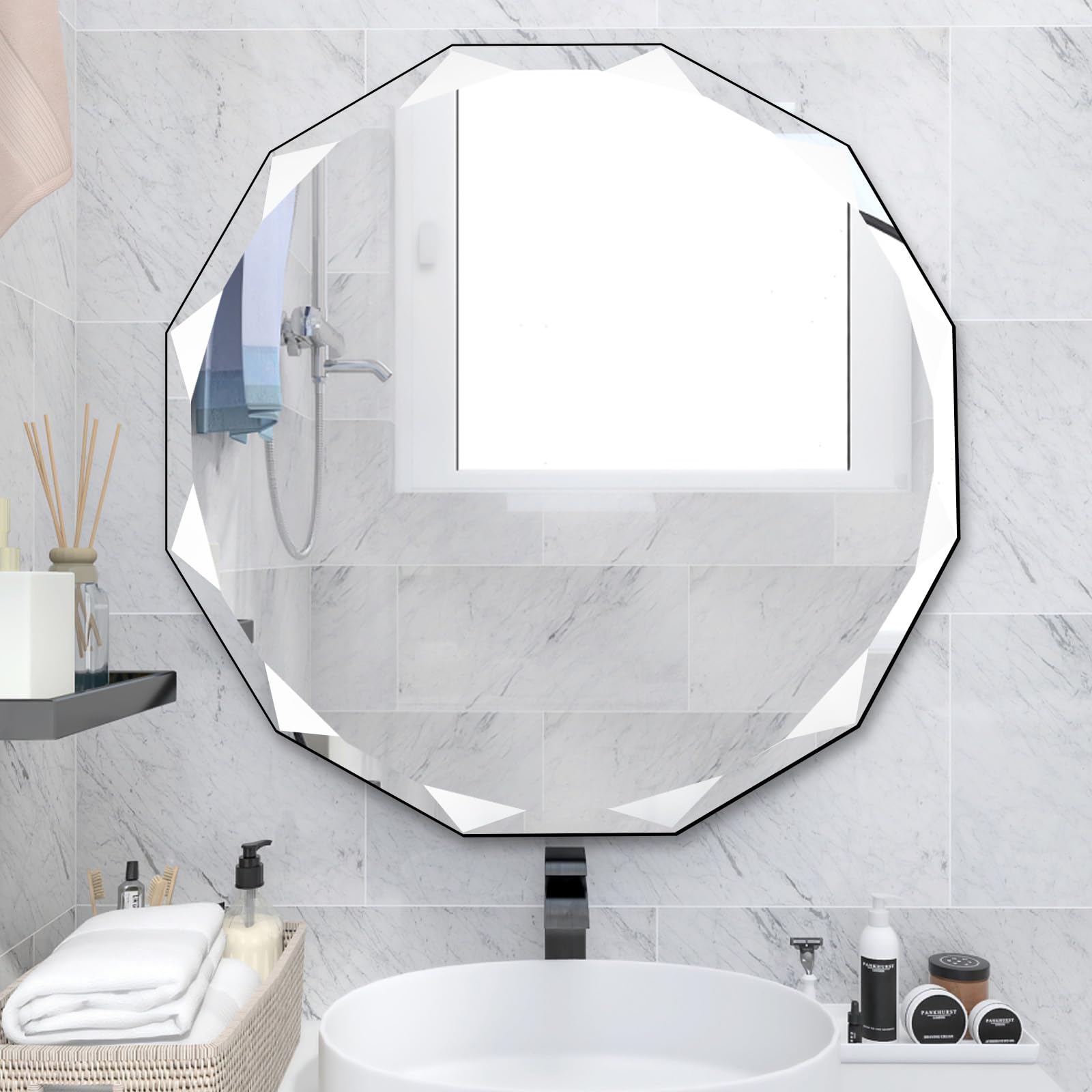 QDSSDECO 30" x 30" Beveled Edge Frameless Wall Mount Mirror, Unique Vanity Mirror, Frameless Wall Mirror for Bathroom, Living Room, Bedroom, Entryway|Home & Garden