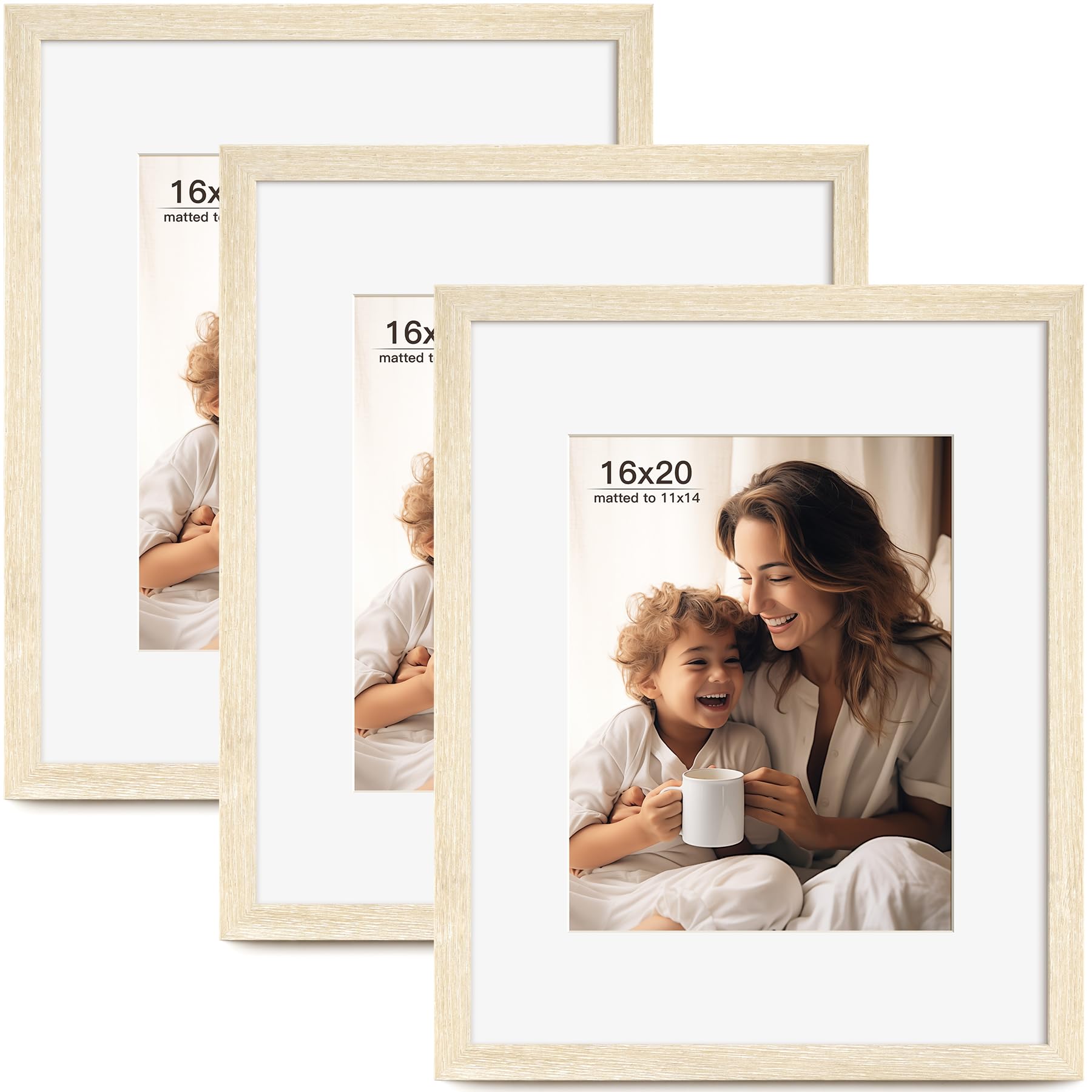 FinalFind 16x20 Picture Frame with Mat for 11x14 Set of 3, Natural Wood Grain 16x20 Frames for Horizontal & Vertical Wall Mounting (3 Pack,Natural)|Home & Garden