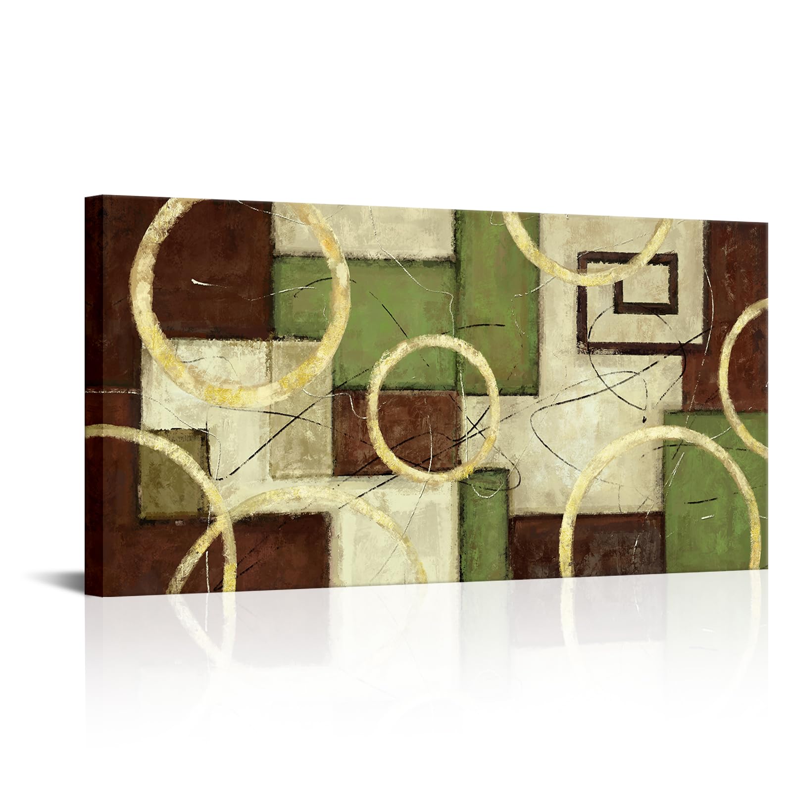 iKNOW FOTO Modern Abstract Geometric Canvas Wall Art - 40x20'' Grey & Brown Circle Painting - Large Simple Framed Artwork for Bedroom, Living Room,|Home & Garden