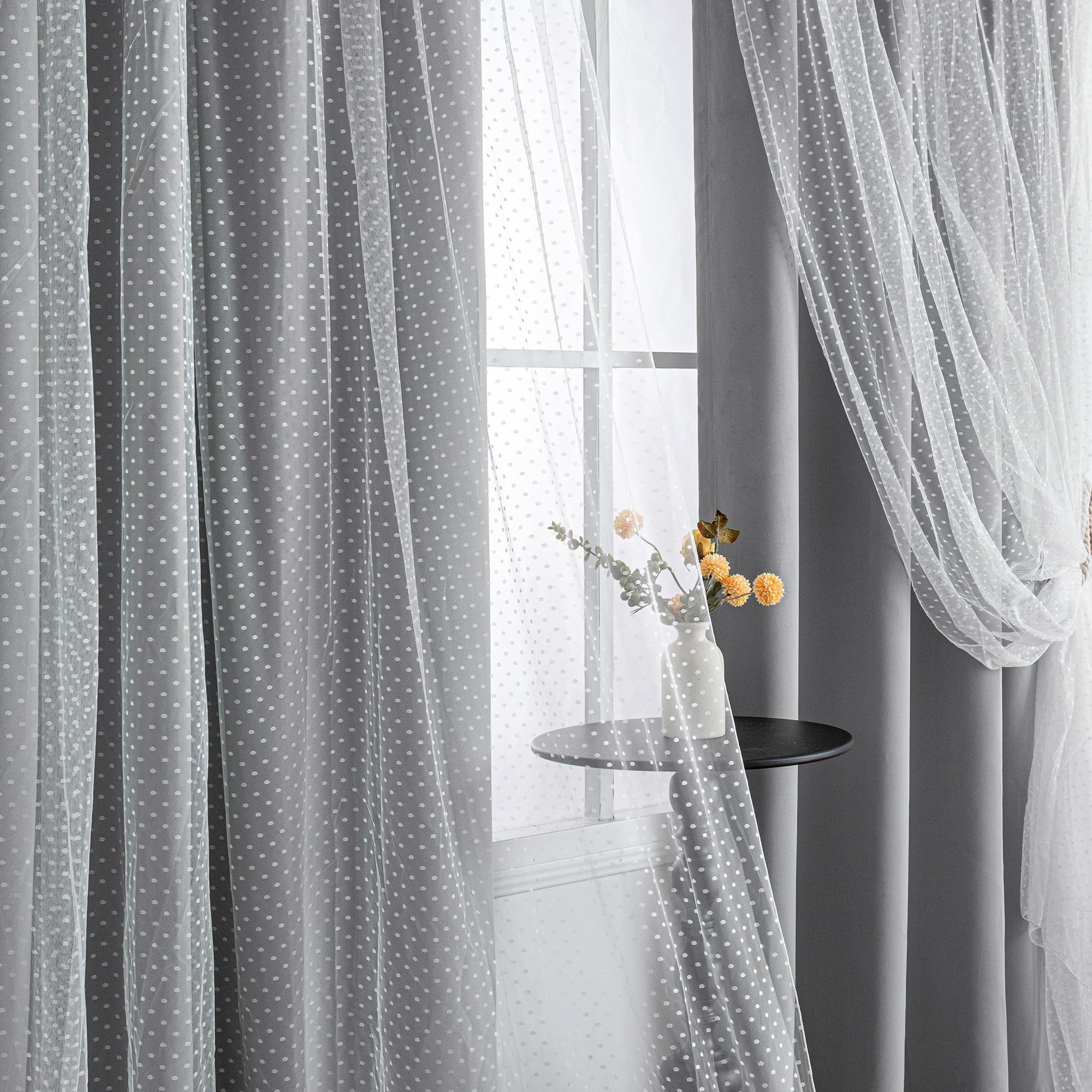 MYSKY HOME 70% Blackout Curtains for Girls Bedroom & Nursery Kids Grey Cute Curtains Double Layer with Polka Dots Sheer, Grommet Tops, 52x84 Inch Each|Home & Garden