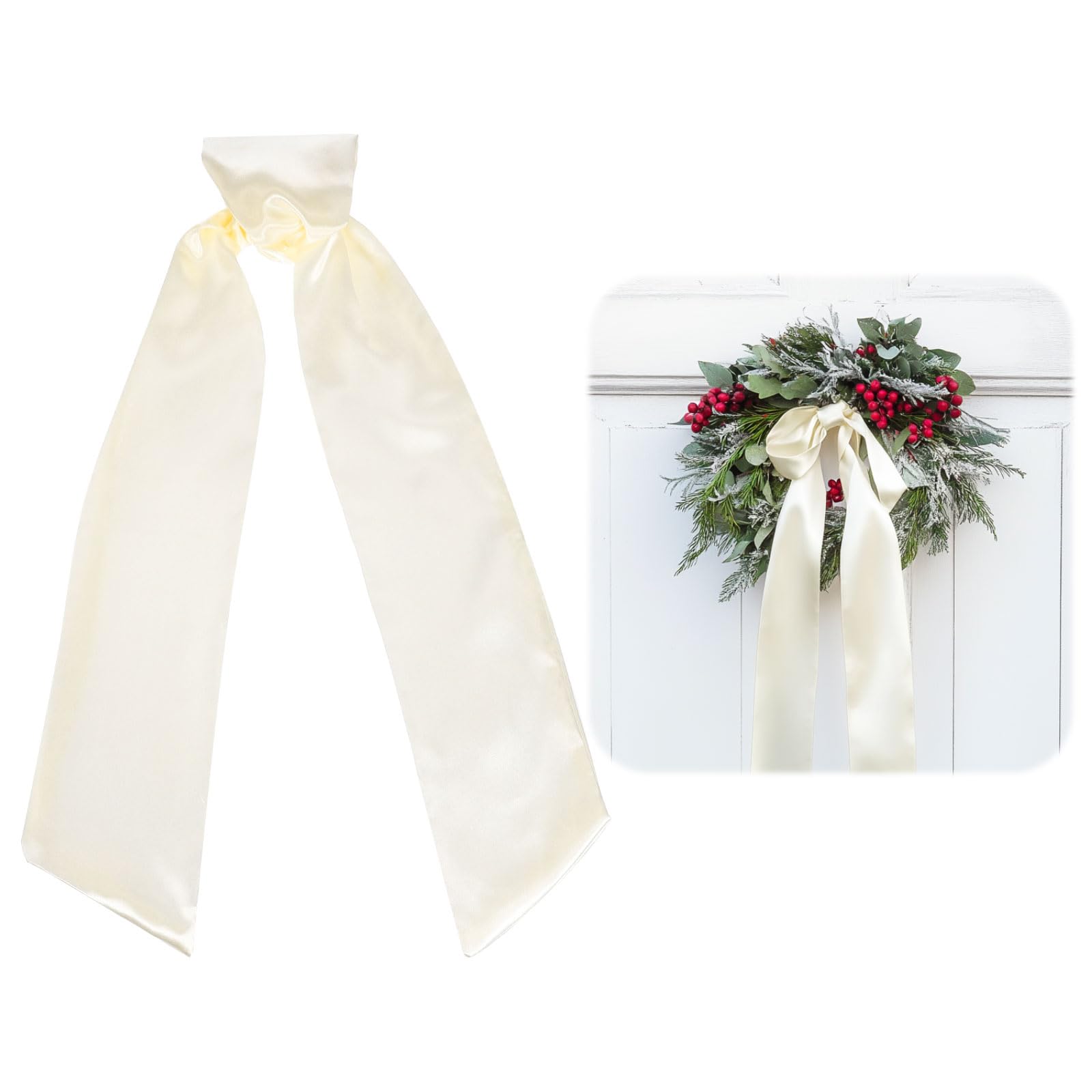 uxcell 2 Pcs Cream Satin Wreath Sash, 58" x 4", Blank Wreath Accessories for Embroidery Monogram, Home Yard Doorway Indoor Outdoor Decoration|Home & Garden