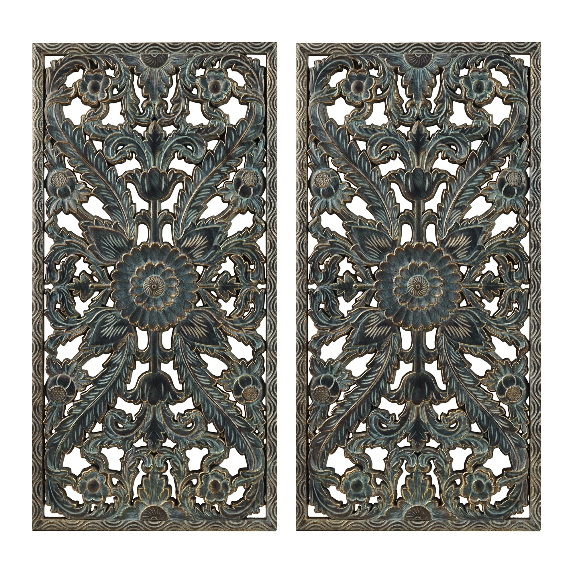 Madison Park Wall Art Living Room Décor - Floral Antiqued Wooden Carving Wall Decor Panel, Copper Embellished, Ready to Hang Wall Decor for Bedroom,|Home & Garden