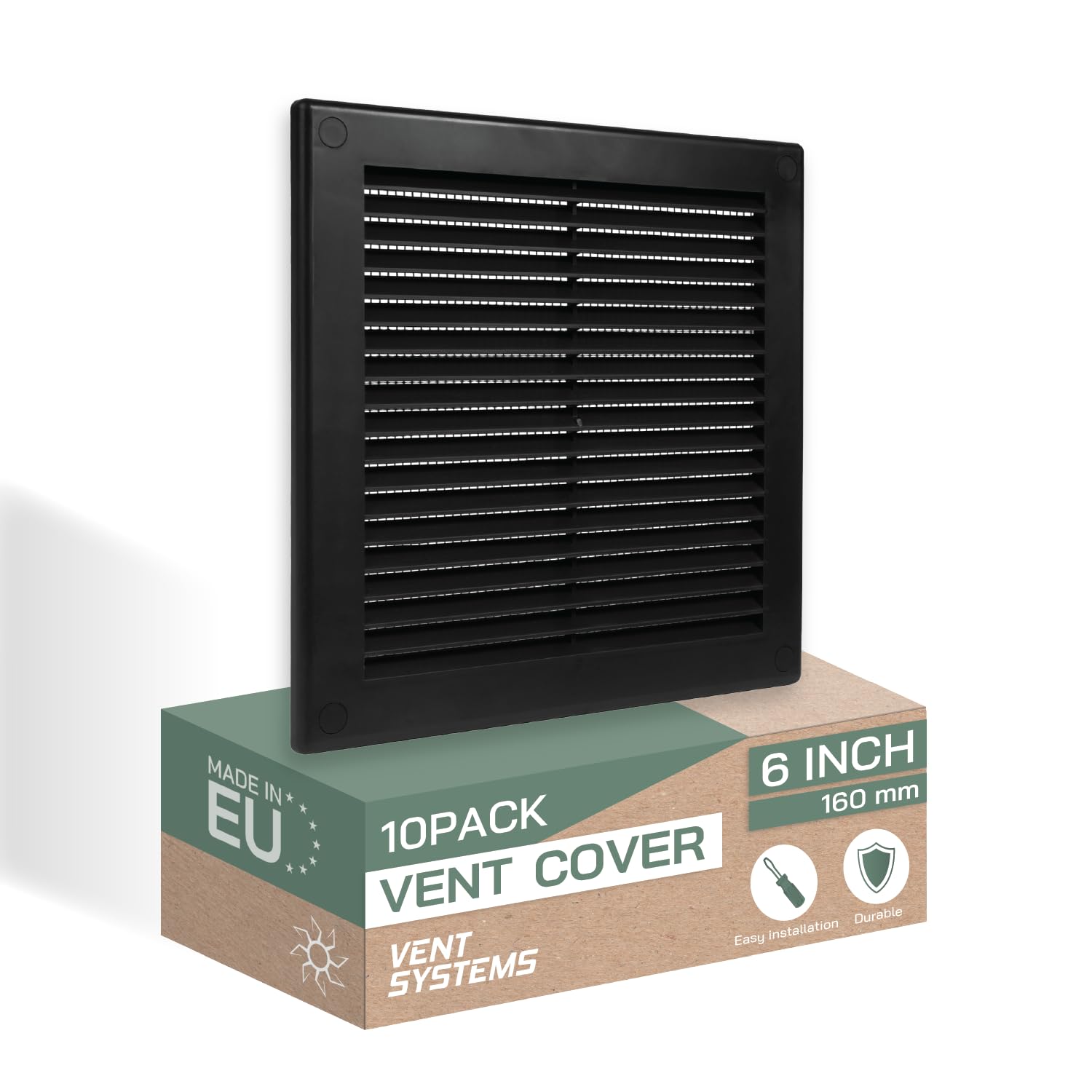 Vent Systems 6" x 6" Inch (Opening Dimensions) - Pack of 10 - Plastic Black Soffit Vent Cover - Flat Square Air Vent Grille - Air Vent Deflector -|Home & Garden