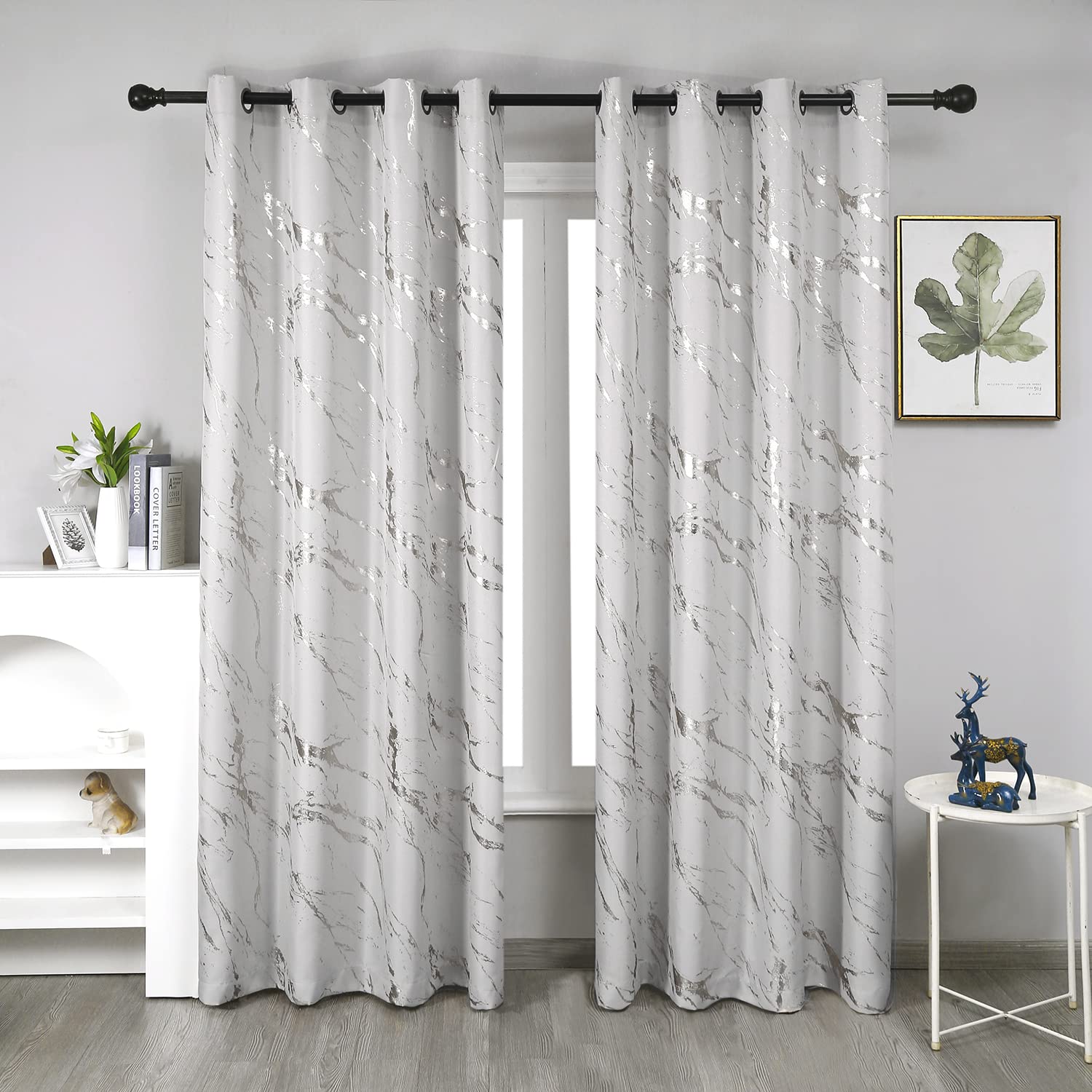 Taisier Home Silver Foil Print Linen Textured Curtains Geometric Marble Pattern Design Curtains for Living Room Light Filtering Window Treatment 2|Home & Garden