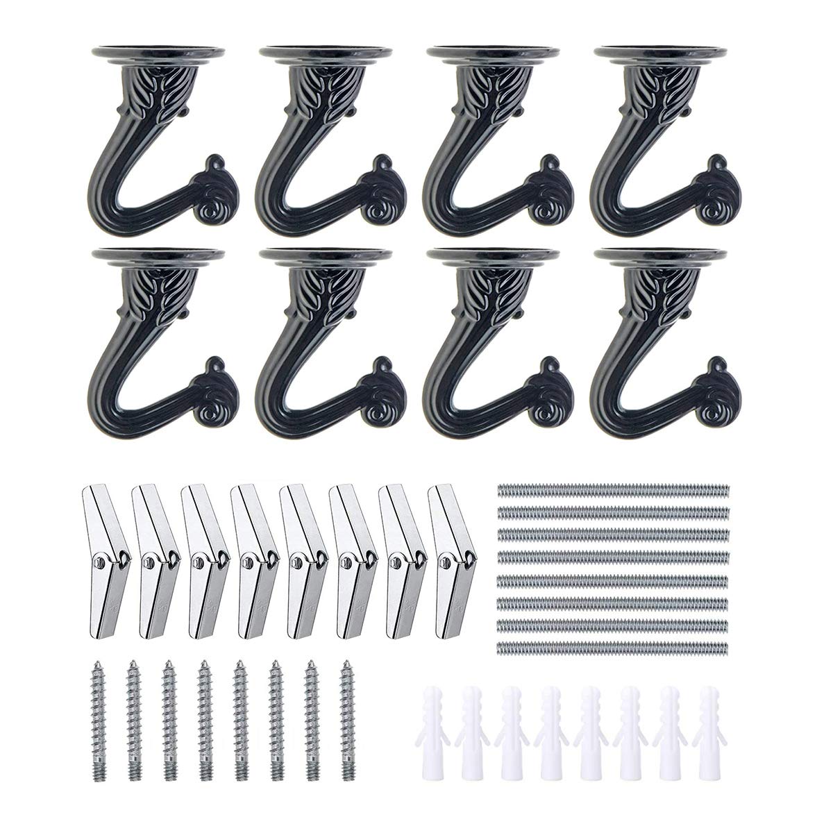 OBSTKUCHEN 8 Sets Swag Ceiling Hooks Heavy Duty Swag Hook with Hardware for Hanging Plants Ceiling Installation Cavity Wall Fixing (Black)|Home & Garden