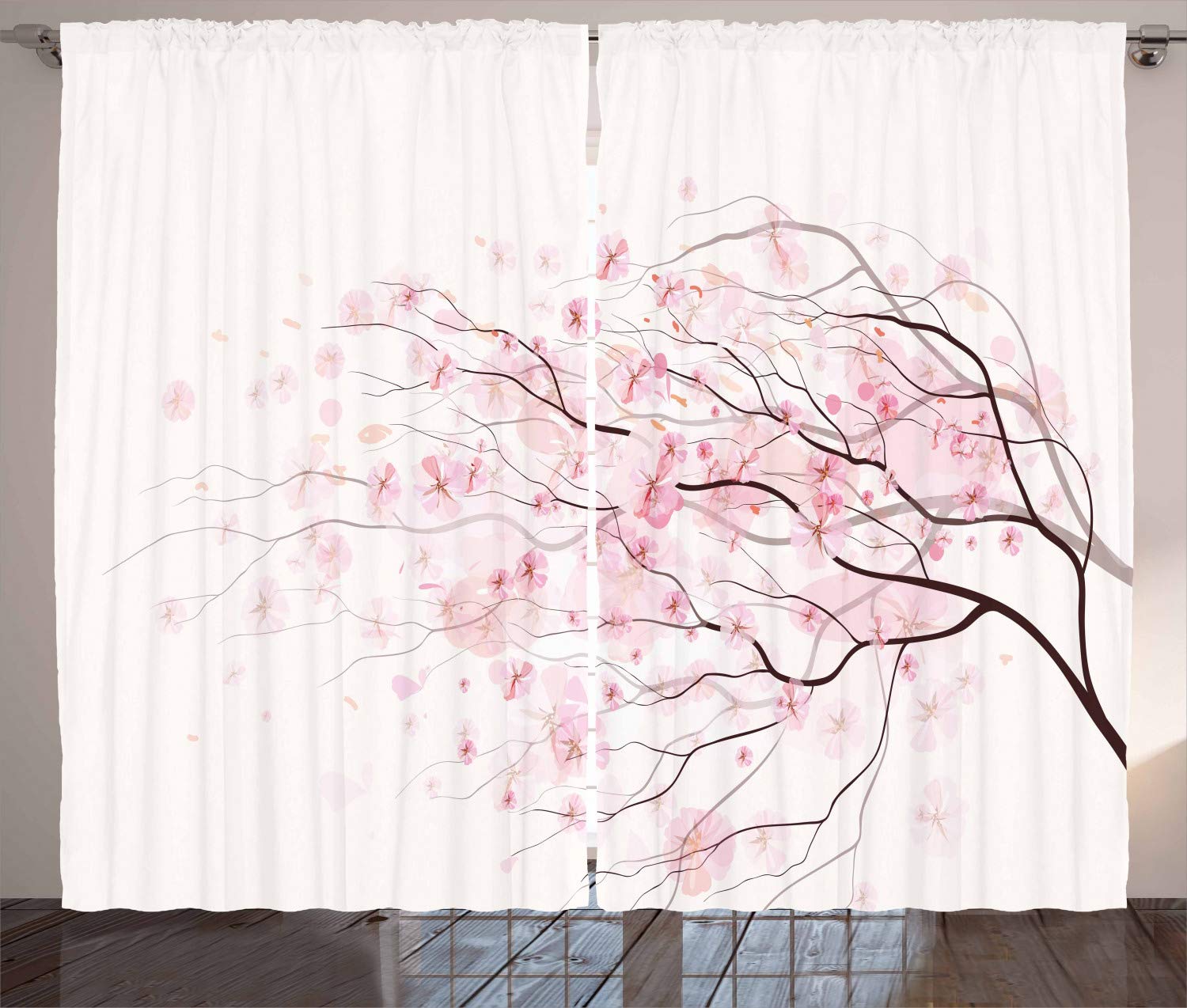 Ambesonne Pale Pink Curtains, Sakura Branch with Cherry Flowers Tender Japanese Spring, Living Room Bedroom Window Drapes 2 Panel Set, 108" X 108",|Home & Garden