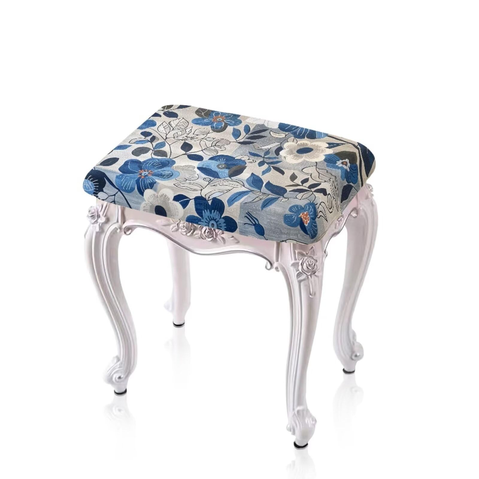 Flashideas Blue Flowers Bar Stool Seat Set of 2 Jacquard Chair Seat Slipcover with Elastic Band Counter Stool Covers Vanity Stool Cover Counter Stool|Home & Garden