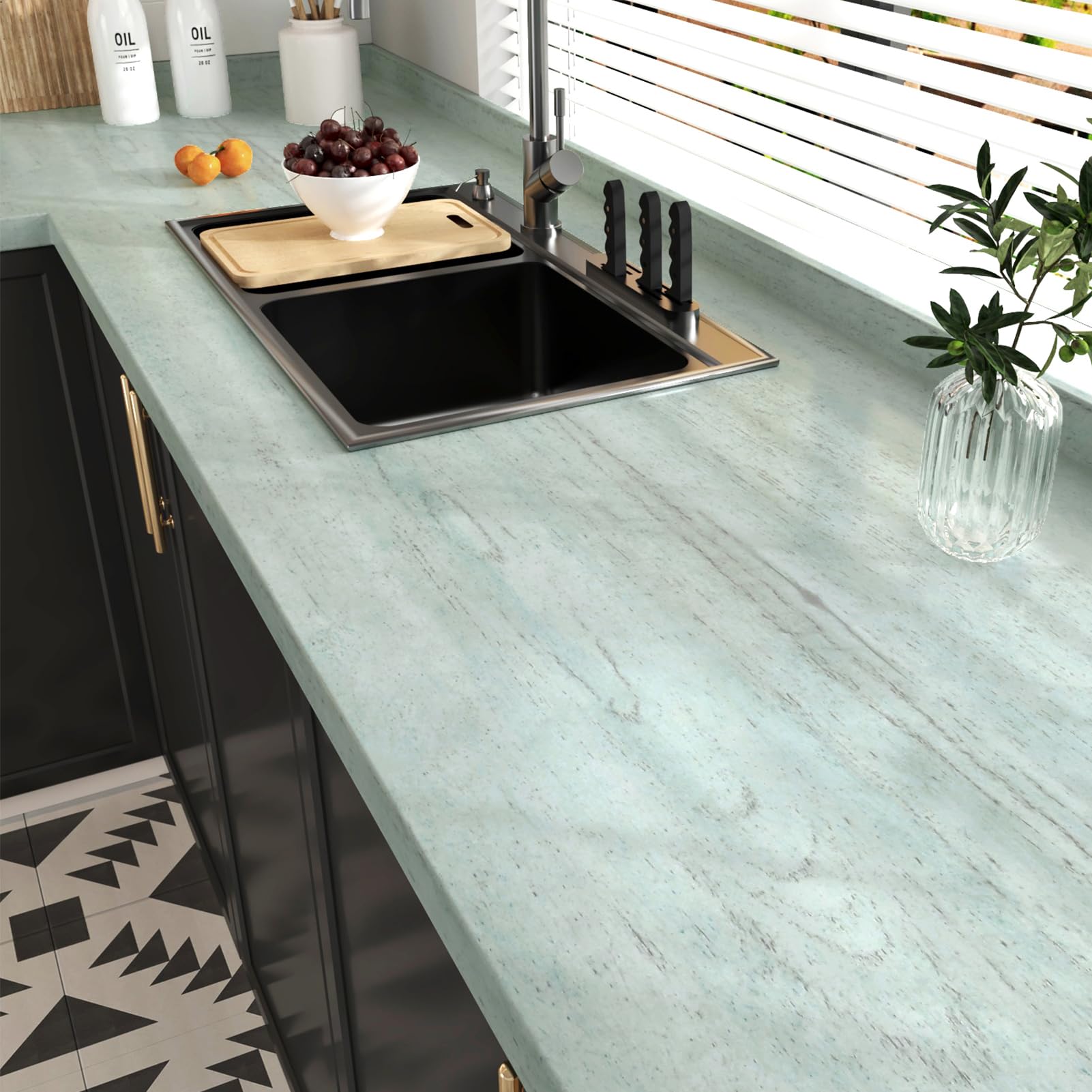 Wallercity Green Wood Contact Paper for Peel and Stick Countertops Wallpaper Cyan Wood Grain Contact Paper for Cabinets & Drawers Self Adhesive Vinyl|Home & Garden