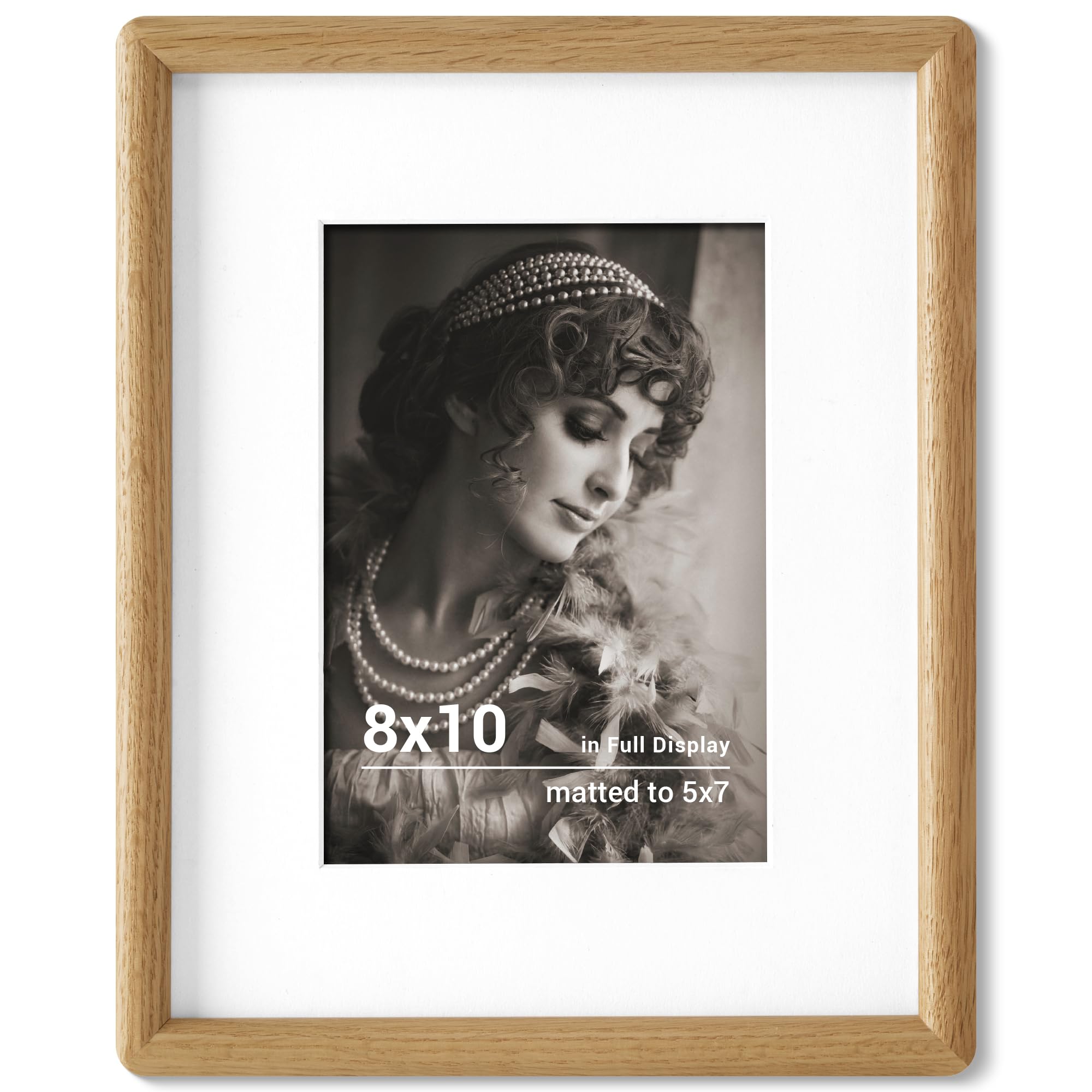 Fun Memories 8x10 Picture Frame - Solid Oak Wood Picture Frames with HD Tempered Glass, Handcrafted Rounded Corner 8 x 10 Wooden Frame Matted to 5x7|Home & Garden