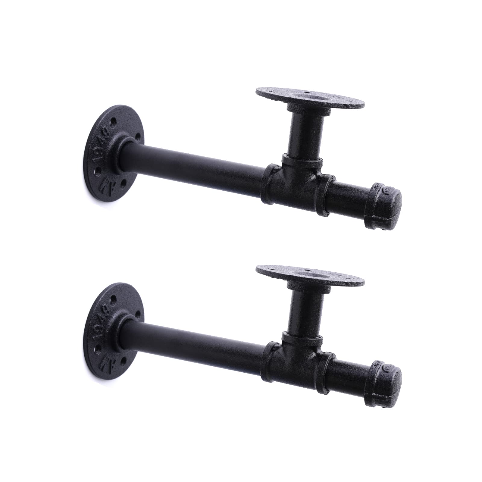 3/4" Industrial Pipe Shelf Brackets, Black Iron Wall Mounted DIY Shelving Brackets Hanging Custom Pipe Brackets for Floating Shelves (2, 10 Inch)|Home & Garden
