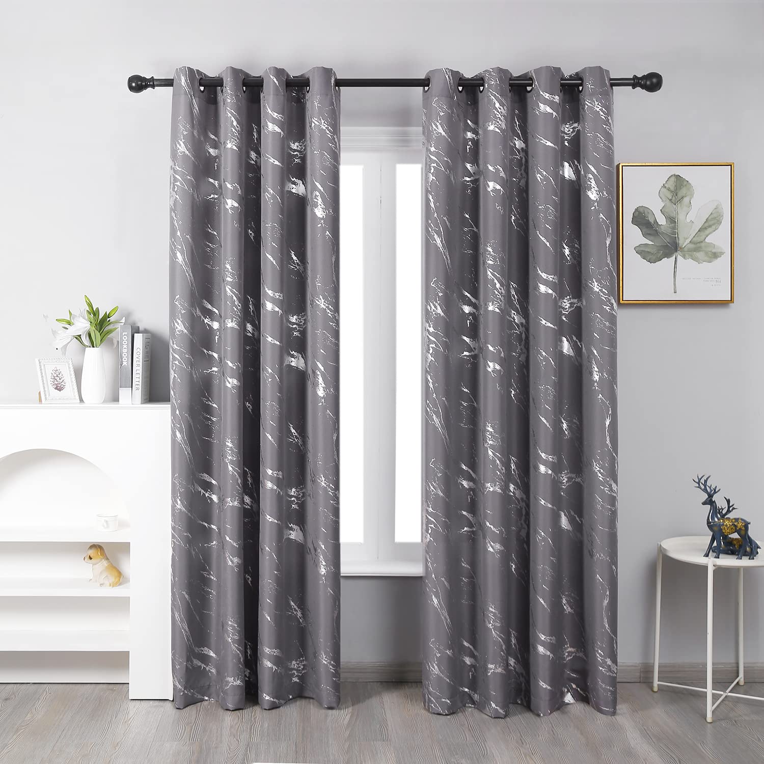 Taisier Home Silver Foil Print Linen Textured Curtains Geometric Marble Pattern Design Curtains for Living Room Light Filtering Window Treatment 2|Home & Garden