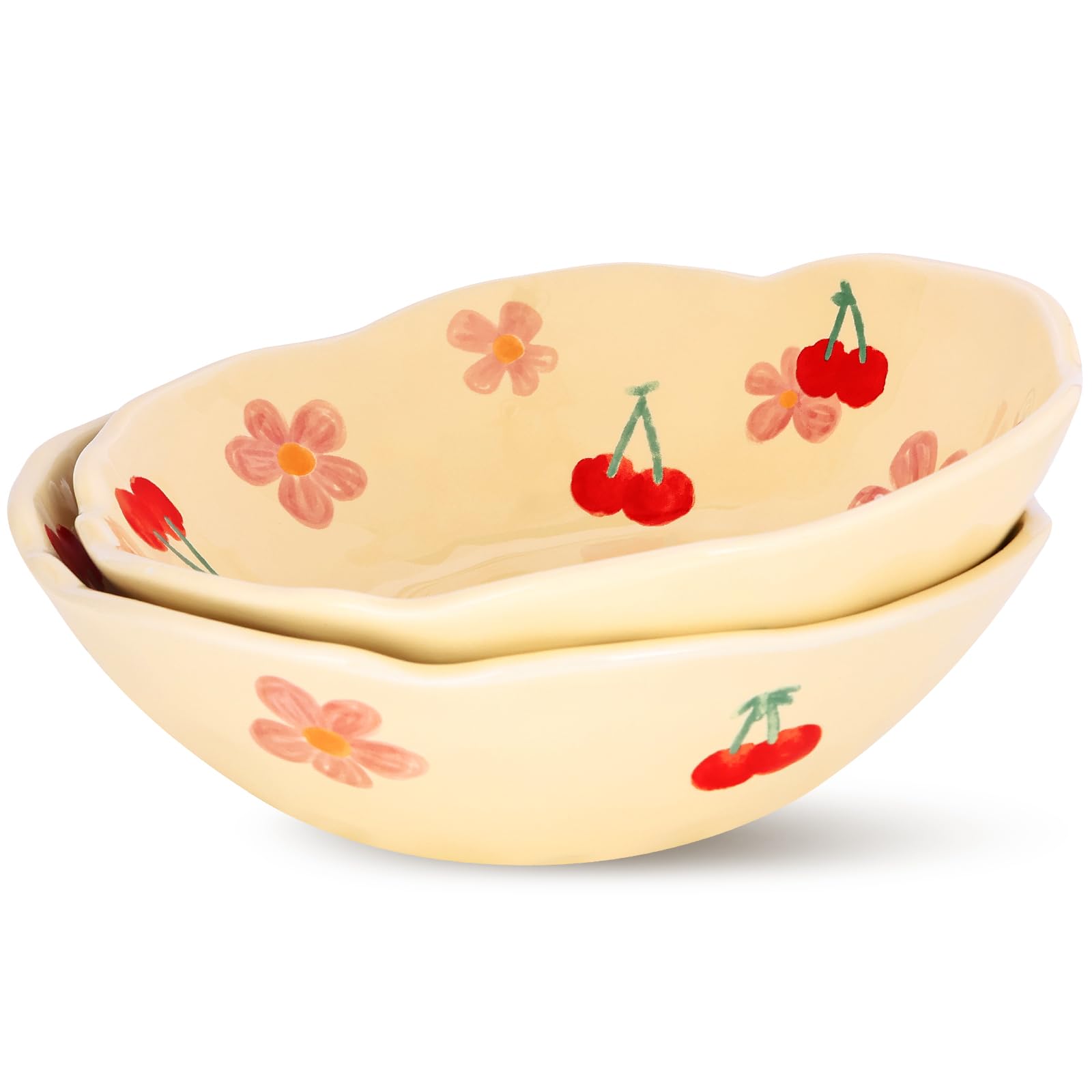 2 Pack Cute Fruit Bowl Ceramic Salad Bowls Pink Cherry Cereal Bowl Candy Dish Kitchen Serving Soup Bowls Snack Dishes Popcorn Container - Microwave &|Kitchen & Dining