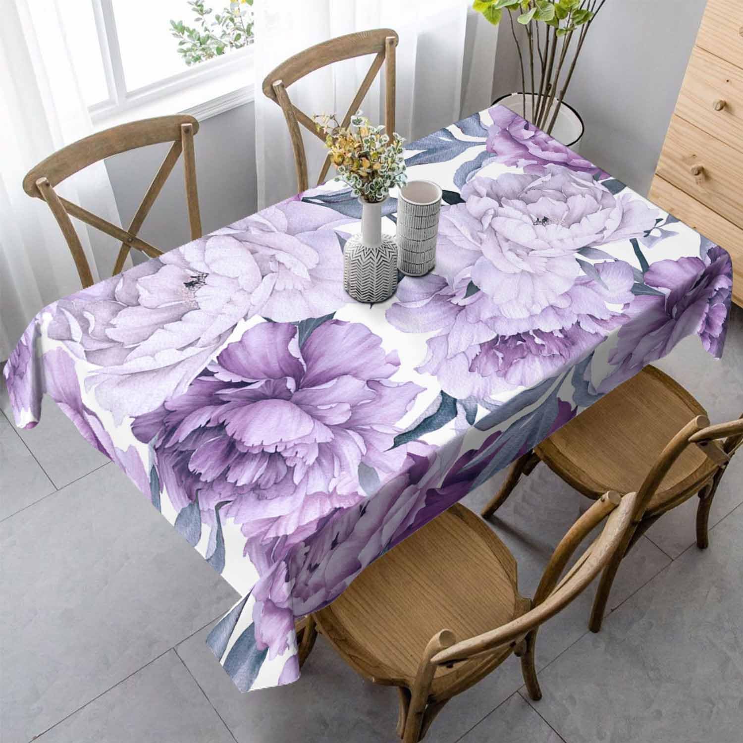LoLo UoUo Purple Flower Table Cloth 60x84 Inch Blue Leaf Peonies Bloom Elegant Vintage Rectangle Kitchen Table Cover Decorations for Home Dinner Party|Kitchen & Dining