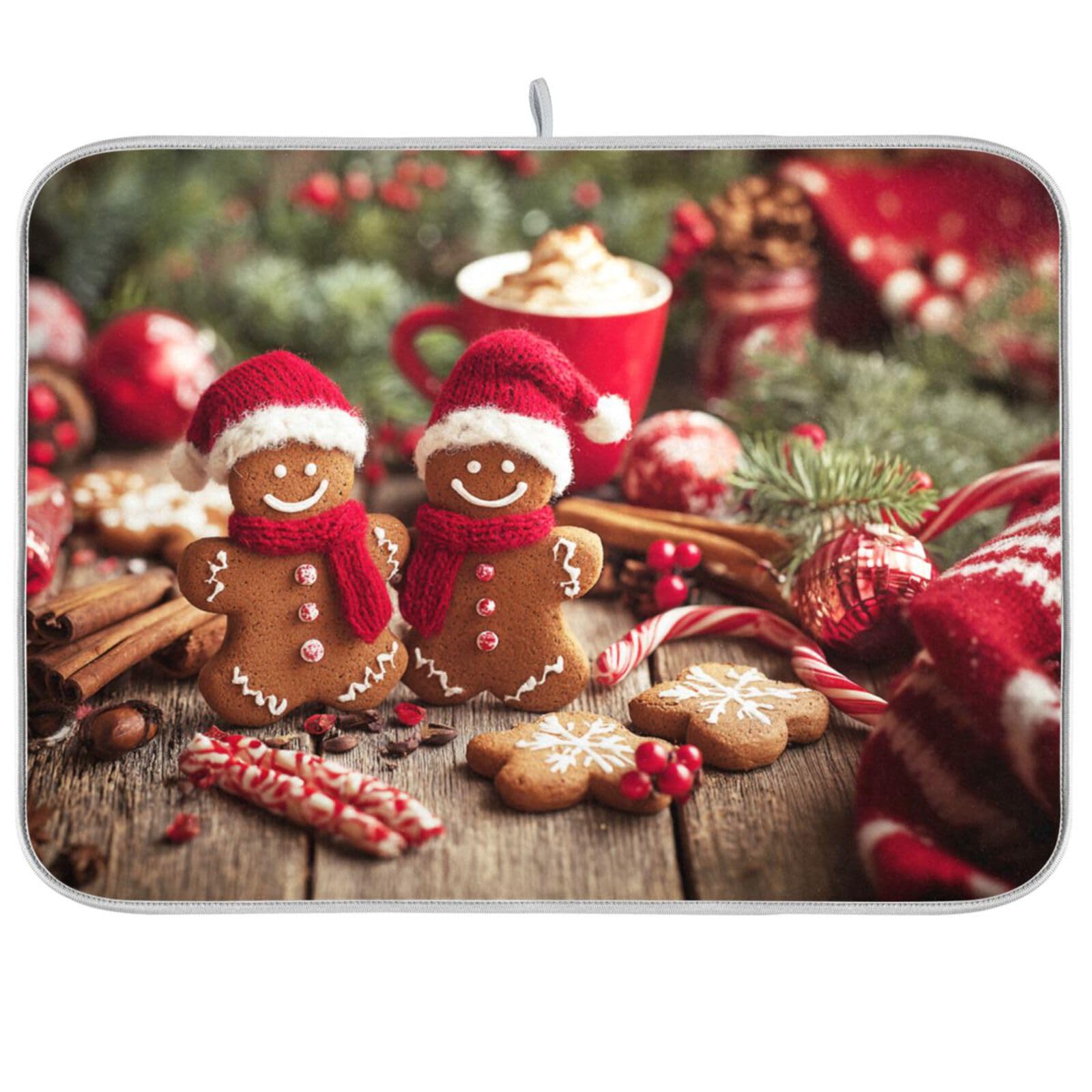 Christmas Gingerbread Cookies Dish Drying Mat for Kitchen Counter 18 x 24 In Candy Berry Balls Absorbent Microfiber Dry Dishes Mats Drainer Mat Dish|Kitchen & Dining
