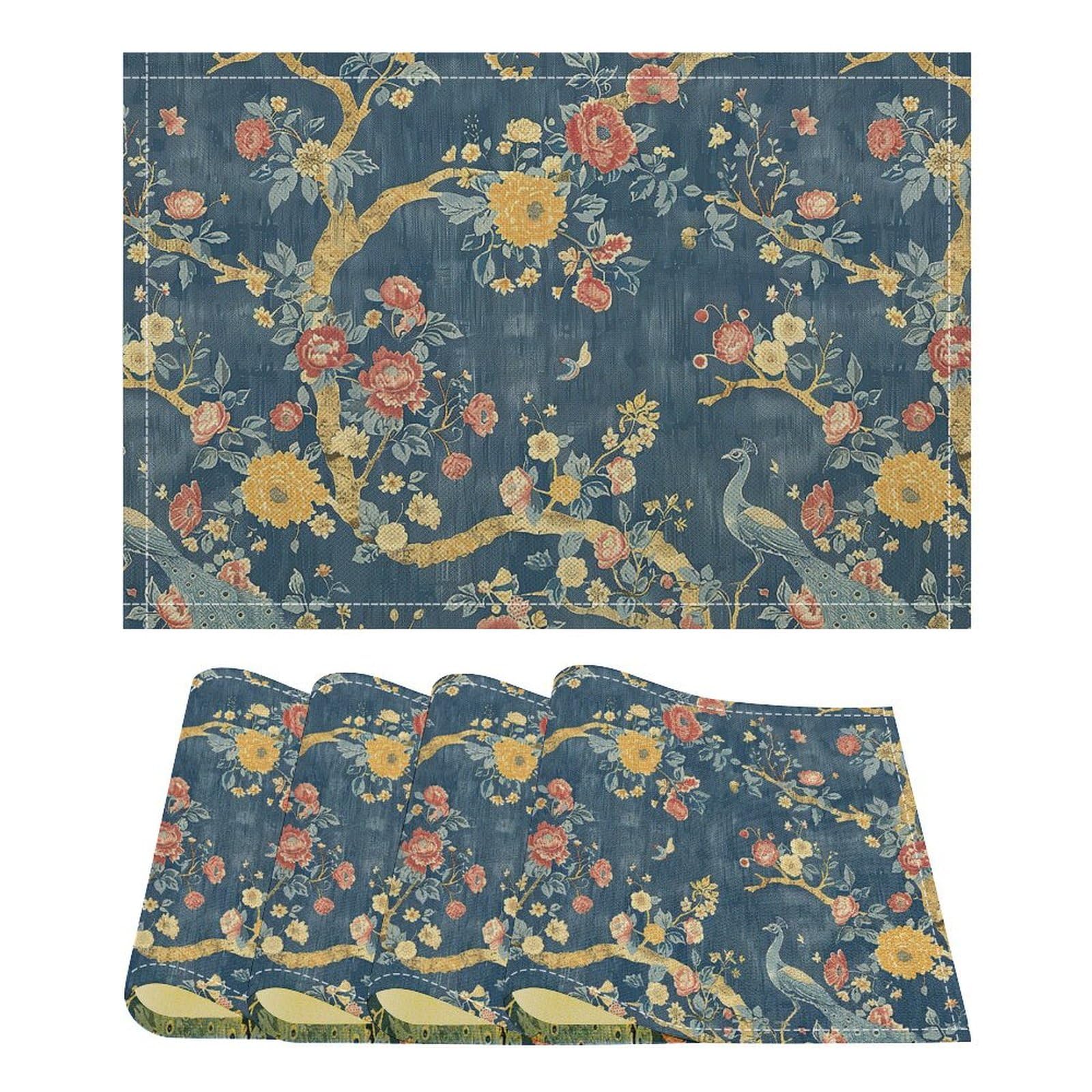 Vintage Floral Placemats Set of 6, Vintage Flower Trees and Elegant Peacocks Print Placemats Table Mat for Home Dining Table Kitchen Party Decor|Kitchen & Dining