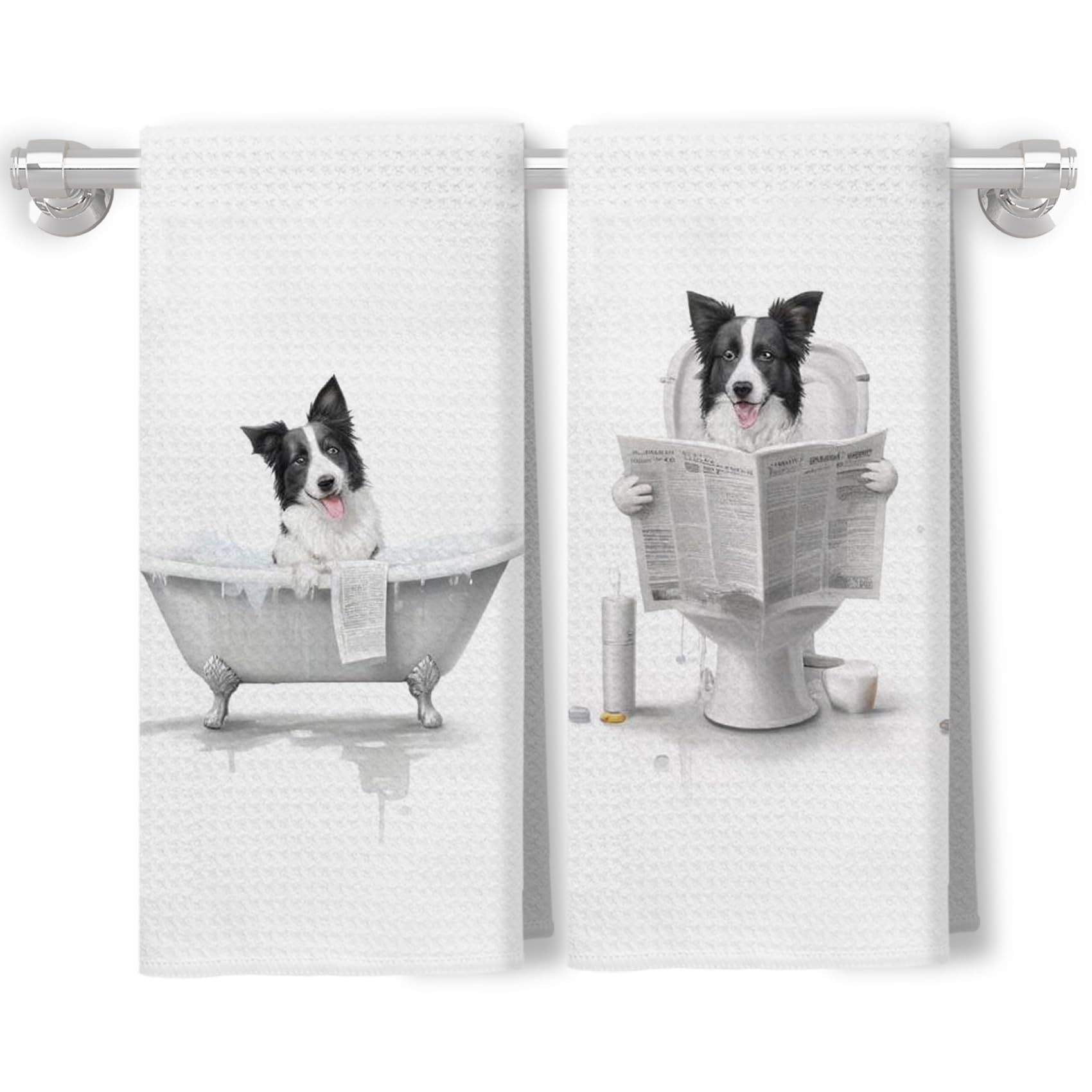 XUNLURY Funny Border Collie Bathroom Hand Towels, Dog Bathroom Decor, Border Collie Gifts for Women, Trendy Black and White Dog Decorative Hand Towels|Kitchen & Dining