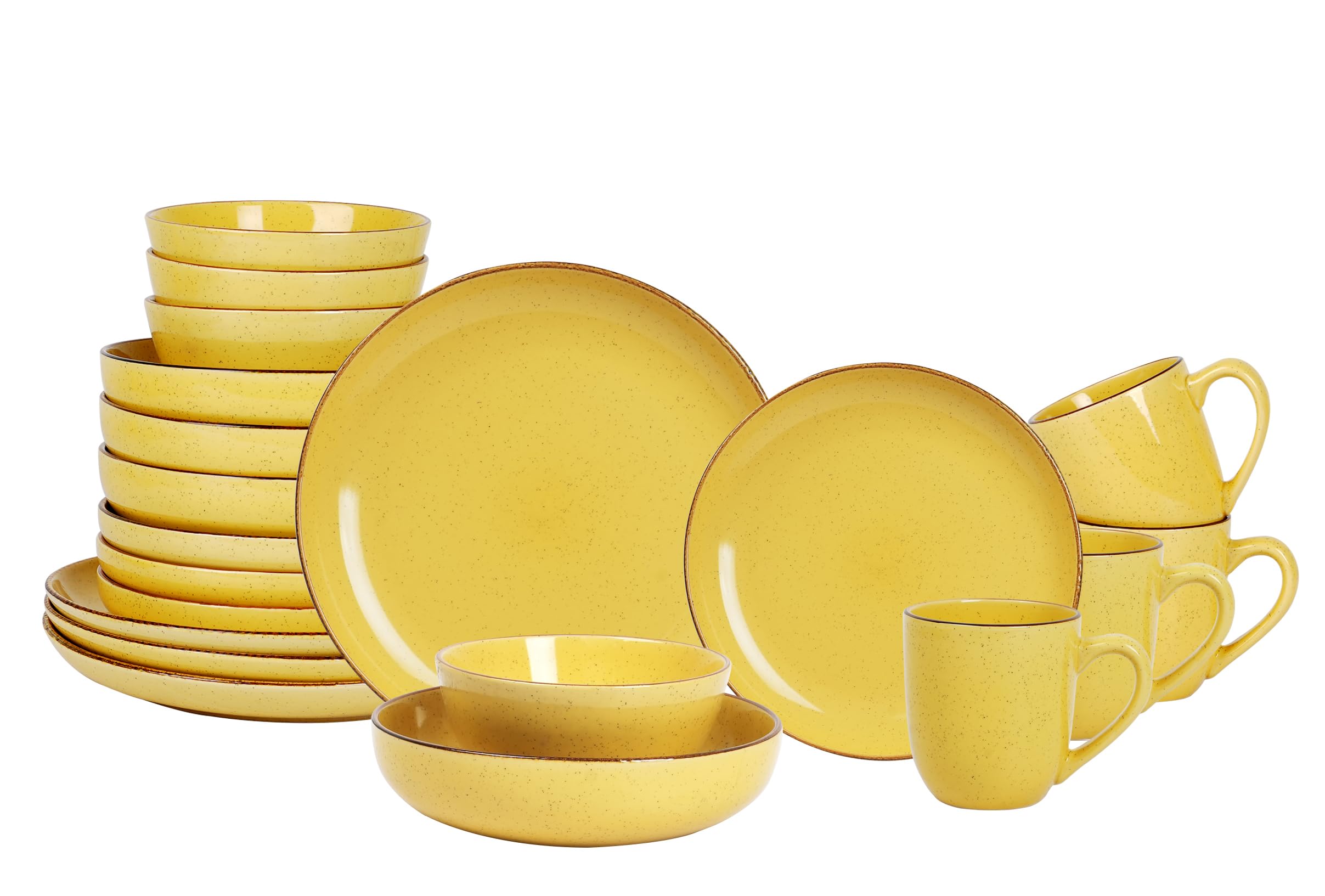 HomeVSS 20-Piece Dinnerware Set - Serves 4, Bright Glaze Yellow plates and bowls sets with Speckle Effect for Microwave & Dishwasher Safe|Kitchen & Dining