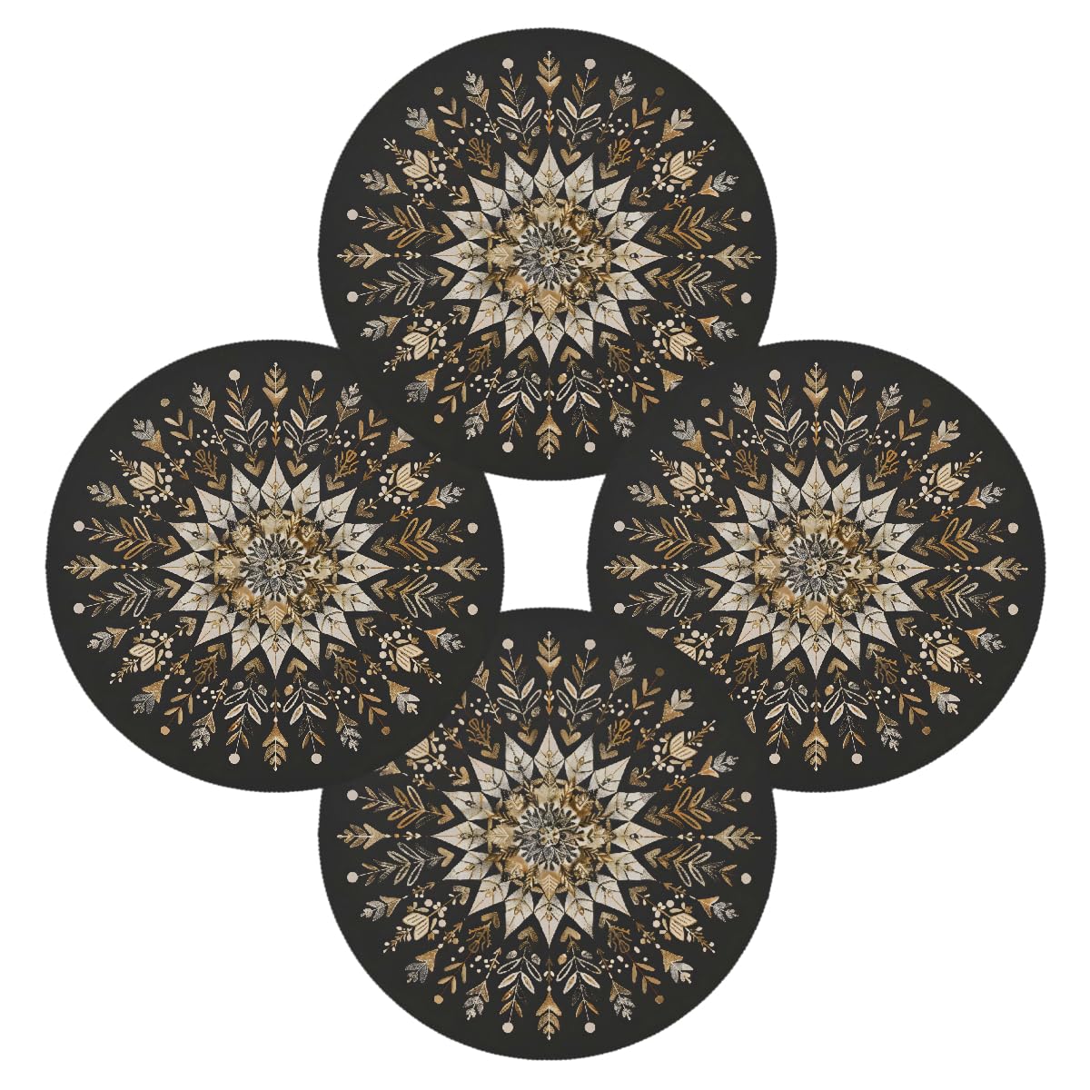 Black Silk Gold Mandala Round Placemats PVC Washable Round Table Placemats Wipeable Dining Table Mats for Kitchen Indoor Outdoor Farmhouse Patio Table|Kitchen & Dining