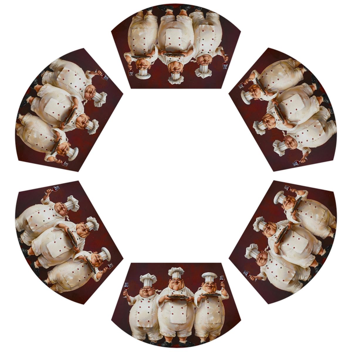 Wedge Placemats Set of 6 Red Chef White Fat Heat Resistant 6 Wedge Place Mat Wipeable Washable Plastic PVC Dinner Table Mats for Indoor Kitchen Party|Kitchen & Dining
