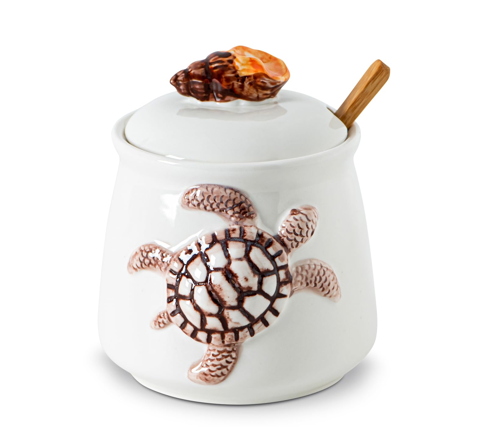 dgudgu Turtle Sugar Bowl With Lid Ceramic Sugar Jar With Conch Lids Ocean Theme Sugar Container With Spoon White Sugar Dish With Lid And Spoon Sugar|Kitchen & Dining
