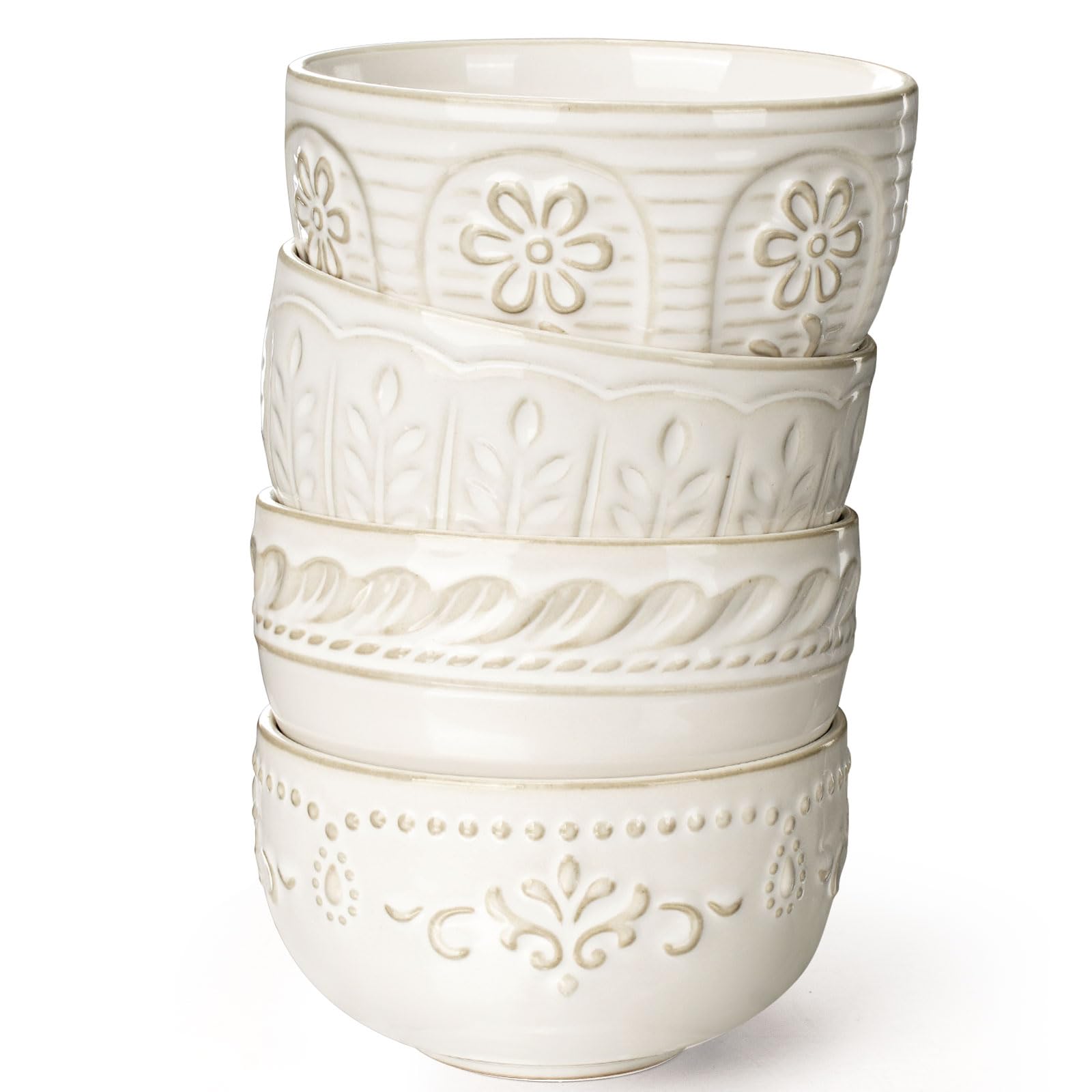 Artena Small Bowls Set of 4, 12 oz Ceramic Embossment Dessert Bowls, white Bowl for Kitchen, Ice Cream, Side Dishes, Rice, Cereal, Fruit, 4.5 Inch,|Kitchen & Dining