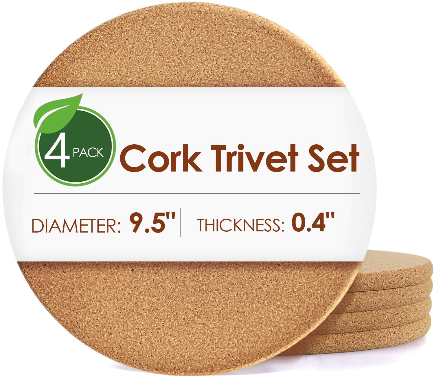 4 Pack Cork Trivets for Hot Dishes, 9.5" High-Density Thick Cork Trivets for Hot Pots and Pans, Heat Resistant Cork Hot Pads for Kitchen,|Kitchen & Dining