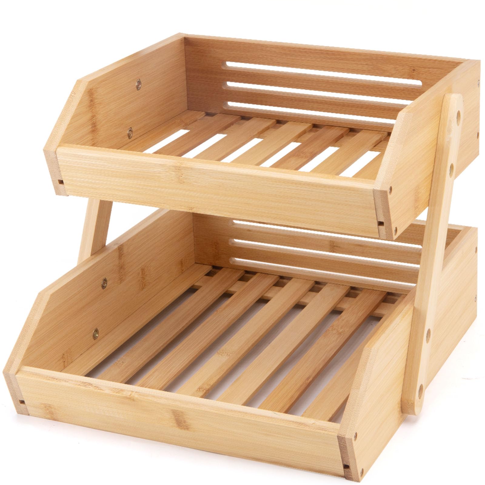 LEIMO KPARTS 2 Tier Bamboo Fruit Basket Stand For Kitchen Counter,Fruit Bowl Holder For Kitchen Countertop,Fruit Vegetable Storage Basket (2 Tier|Kitchen & Dining