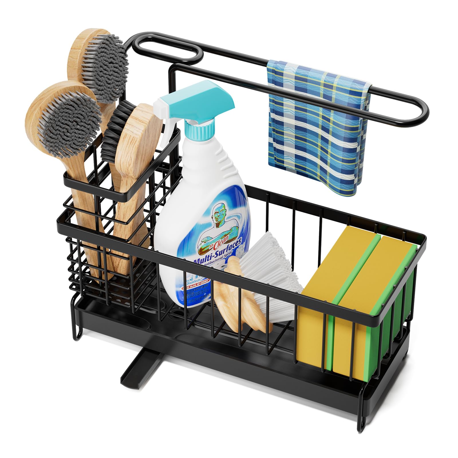 Tell Love Kitchen Sink Caddy, Sponge Holder with Towel Holder, Kitchen Holder for Sink with 360 Degree Rotating Drain, Carbon Steel Rustproof, Kitchen|Kitchen & Dining