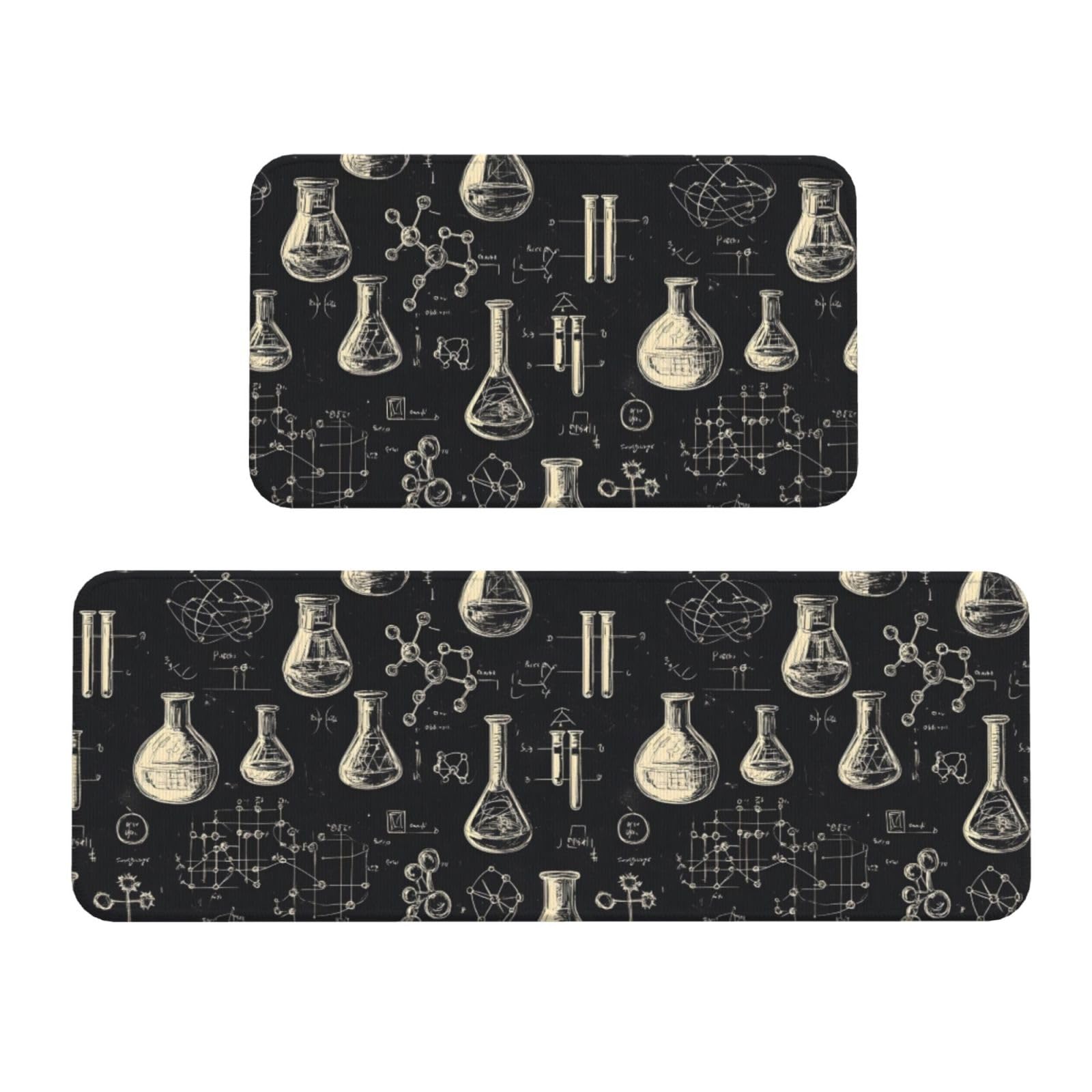 TZTTZT Antifatigue Kitchen Mats for Floor 2 Piece - Science Lab Doodle Pattern A Print Kitchen Rugs Non Slip Washable, Runner Rug Standing Mat for|Kitchen & Dining
