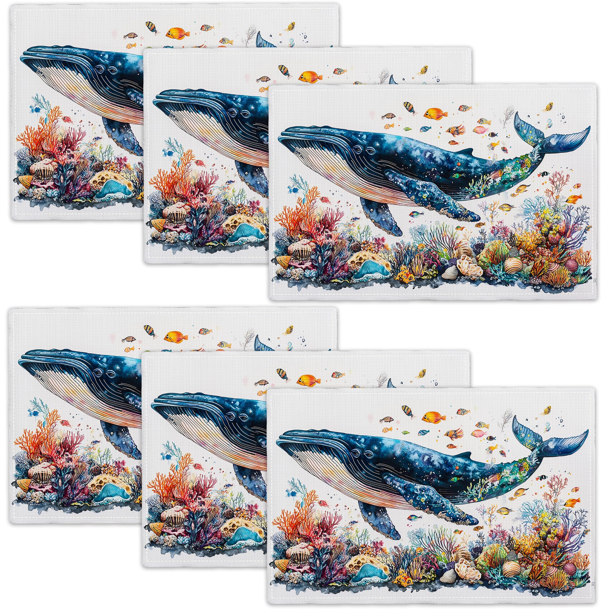 Ocean Whales Placemats Set of 6 Coral Reefs Place Mats Ocean Double-Sided Printing Table Mats for Kitchen Dining Room Restaurants Decor Imitation|Kitchen & Dining
