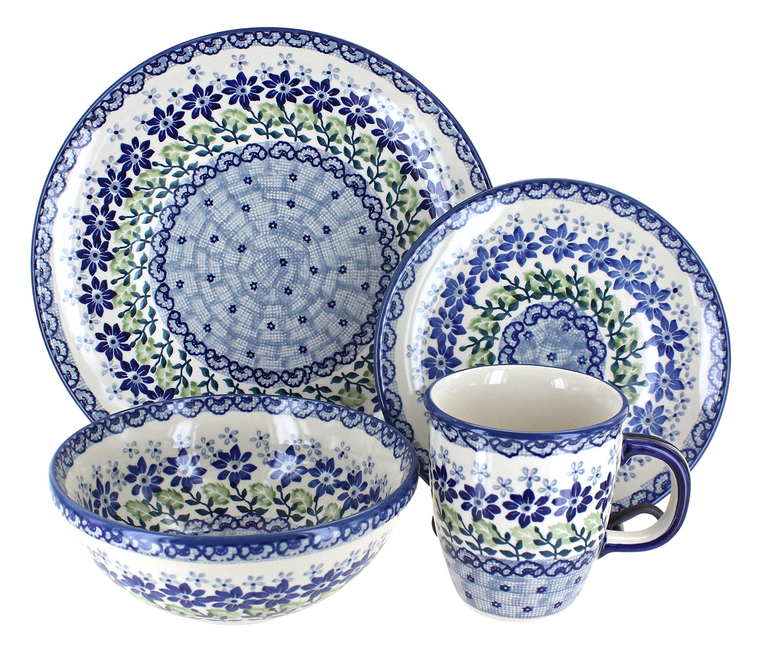 Blue Rose Polish Pottery - Blue Hallsey 4 PC Place Setting - Service for 1-1 Place Setting - Great for Everyday Dining, Casual Dining, or as Formal|Kitchen & Dining