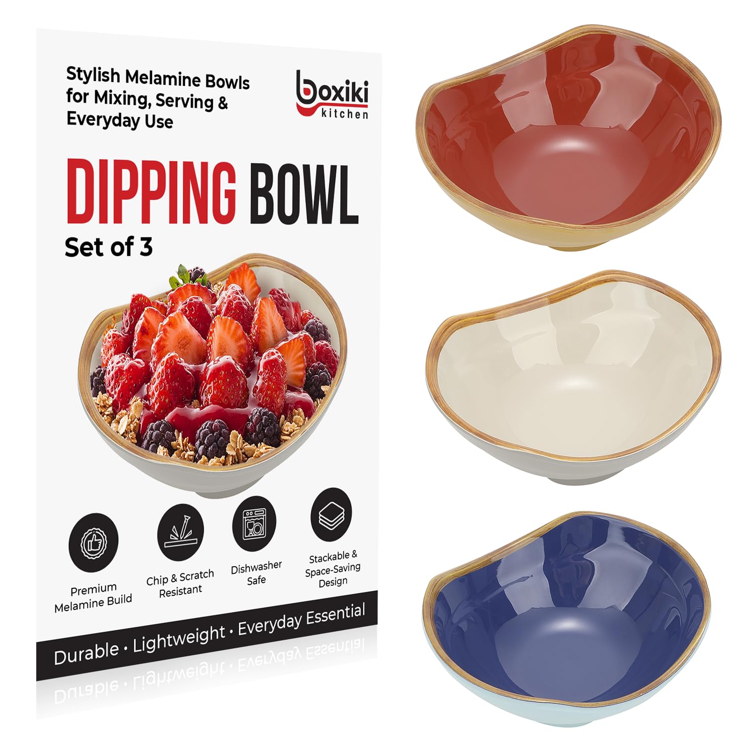 Boxiki Kitchen Dipping Bowls Set of 3 – Ultra-Strong Sauce & Condiment Bowls for Soy Sauce, Sushi, Ketchup, BBQ, Vinegar, Salsa & Desserts – Stackable|Kitchen & Dining