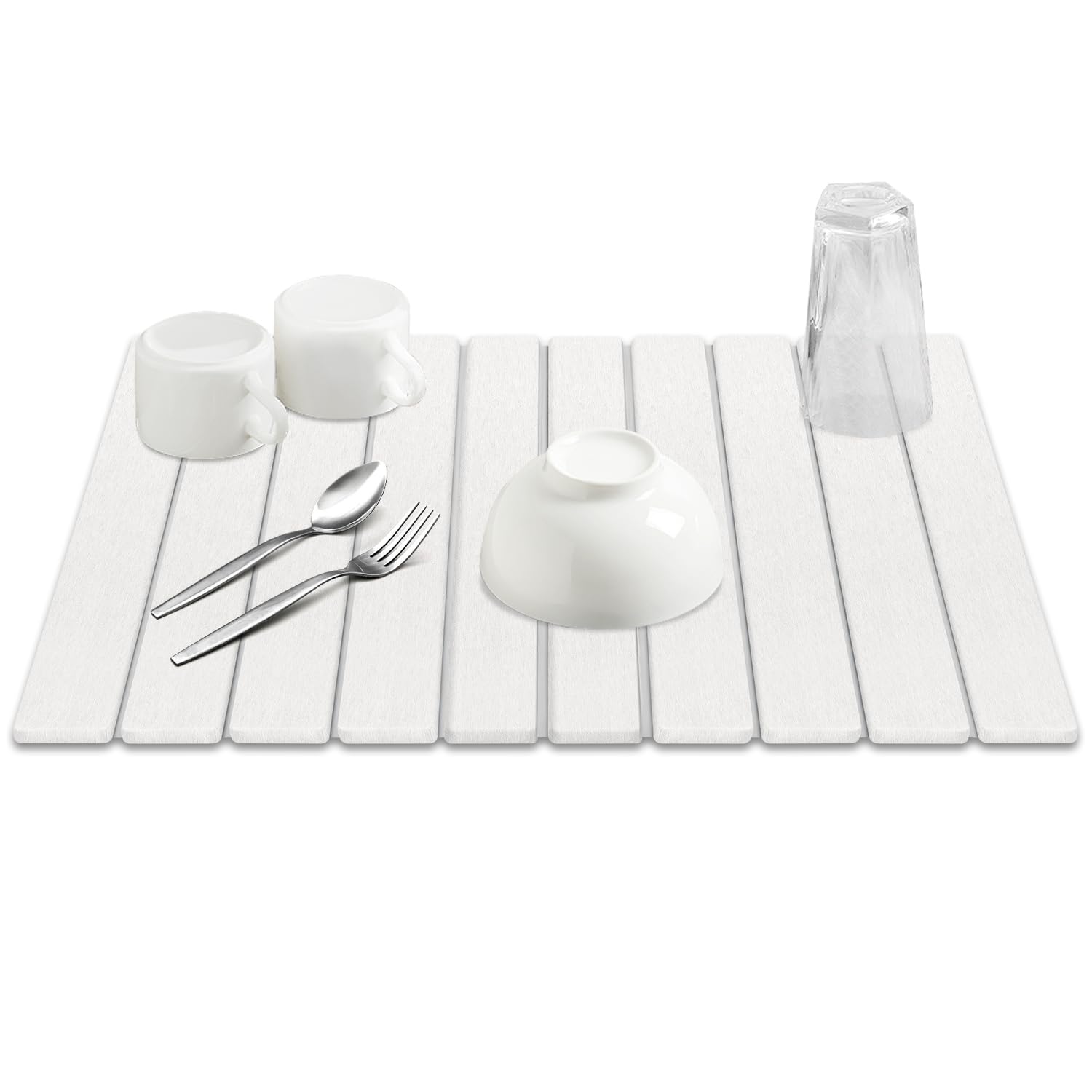 Fuairmee Large Stone Drying Mat, Diatomite Dish Drying Mat, Dish Mat Drying Kitchen Mat - Storable & Anti-Slip for Kitchen, Square, White, 24"x16"|Kitchen & Dining
