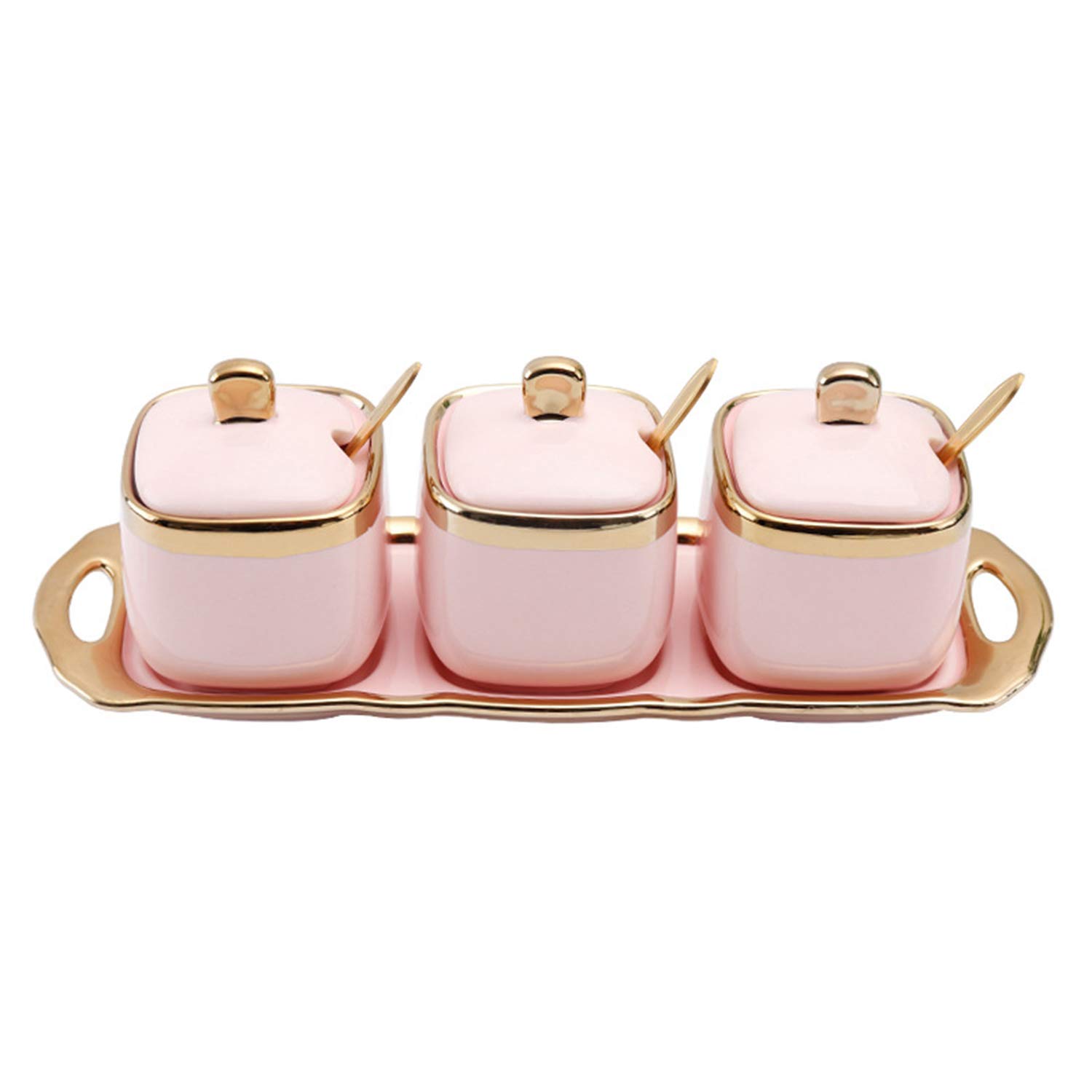 Ceramic Kitchen Canister Set Pink Kitchen Ceramic Jars Set Counter with Ceramic Lid, Spoons and Tray | 3pcs Kitchen Canister Set for Coffee, Tea,|Kitchen & Dining