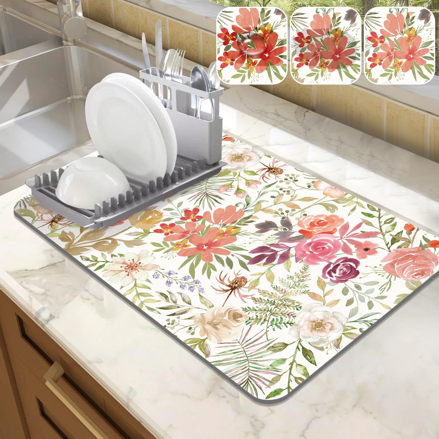 LOKHOM Dish Drying Mat for Kitchen Counter, 12"x20" Absorbent Coffee Bar Mat with Pink Roses Petals , Dish Drainer Rack Mats for Kitchen Counter|Kitchen & Dining